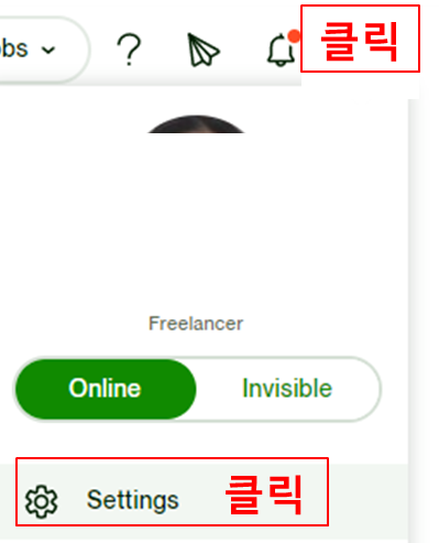 메인화면 상단에 본인 사진을 클릭하고 Settings를 클릭합니다.