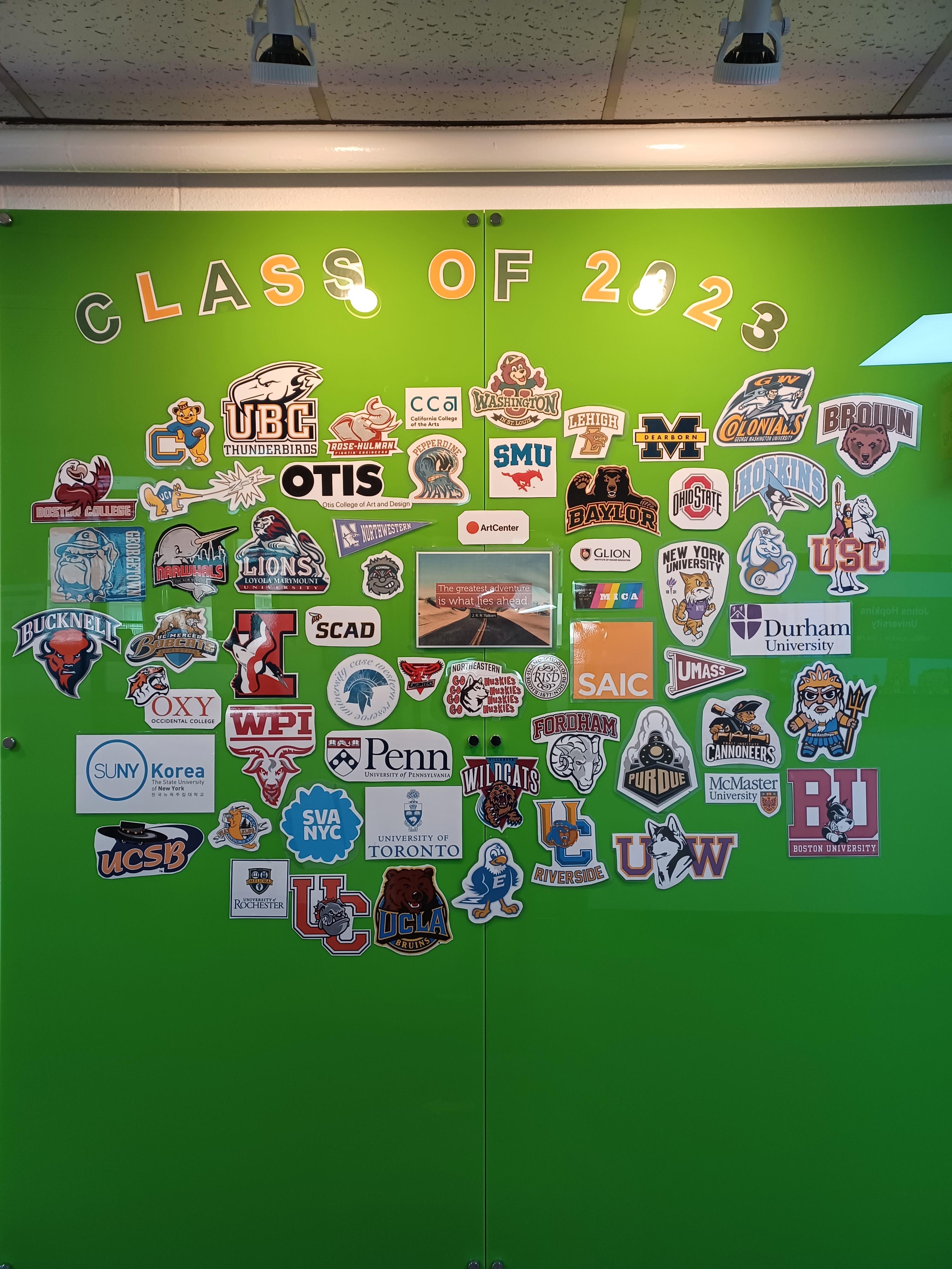 컬리지 카운스링 방 앞에는 이번해 대입 결과를 붙여놓았 습니다.