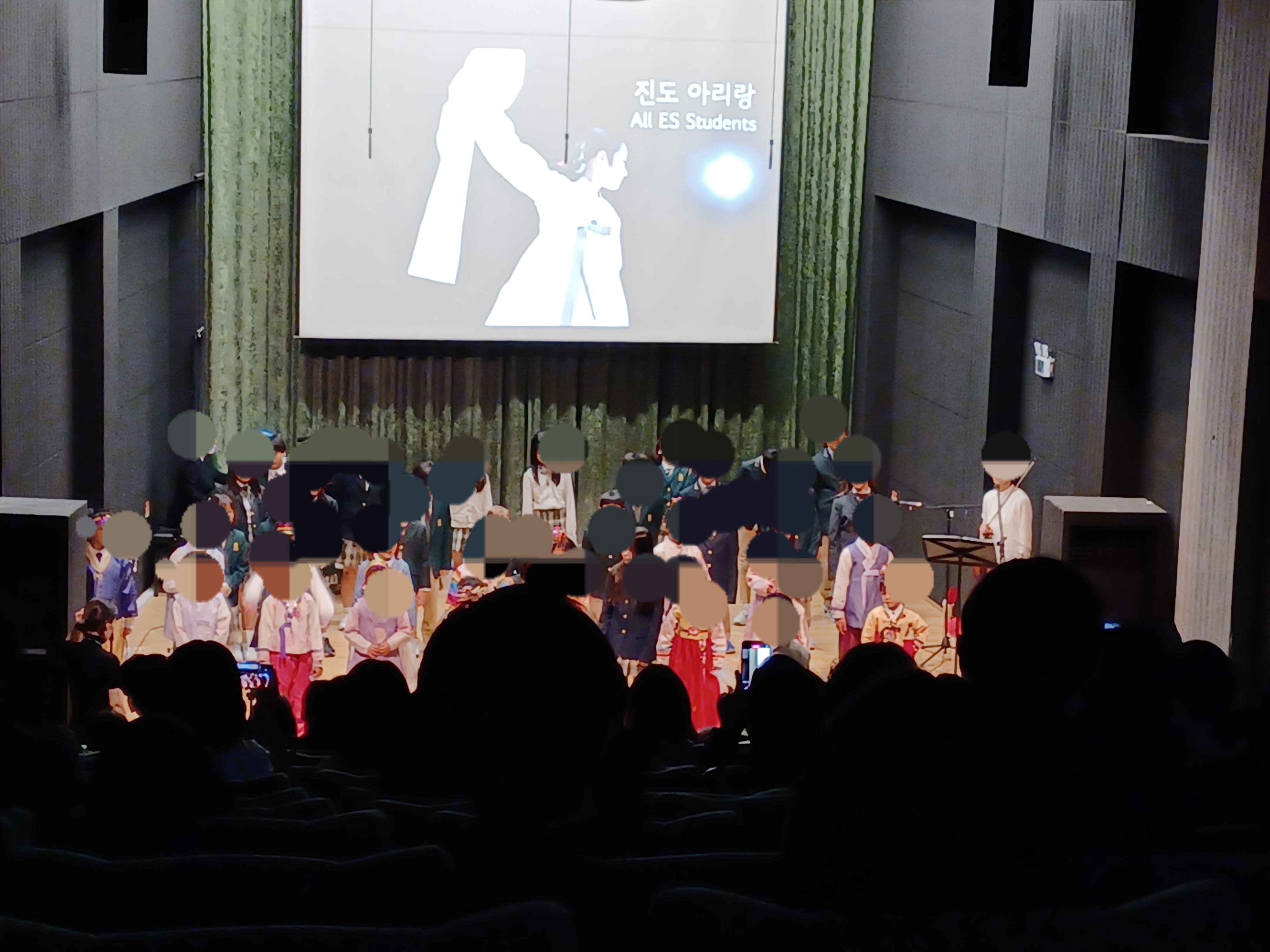 오디토리움에서는 코리안 데이라고 한국 민요, 동요를 열창하고, 부모님들도 멋진 한국 노래를 불러주셨습니다.