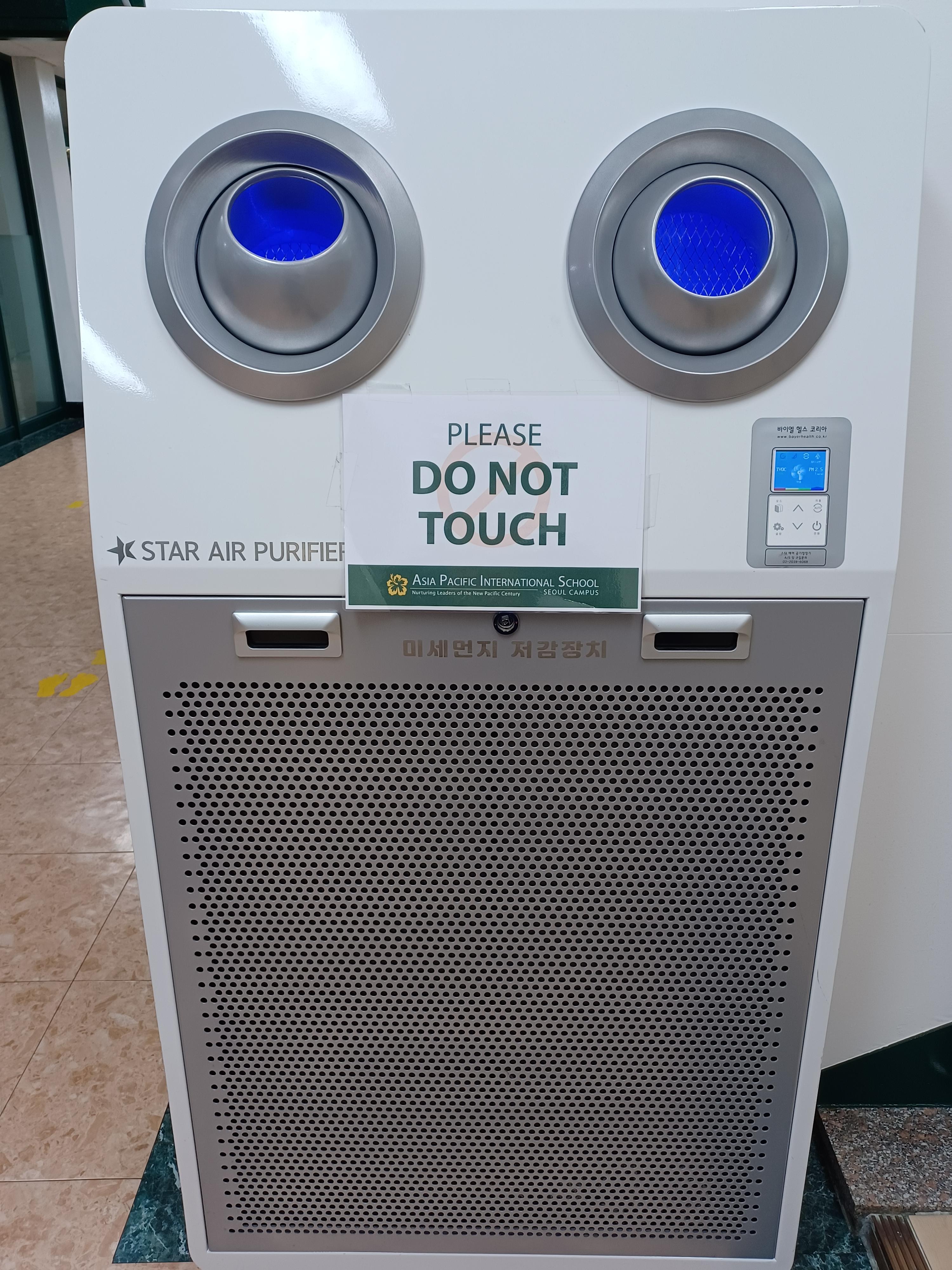 각층 복도에 대형 공기청정기가 설치되어 있습니다.