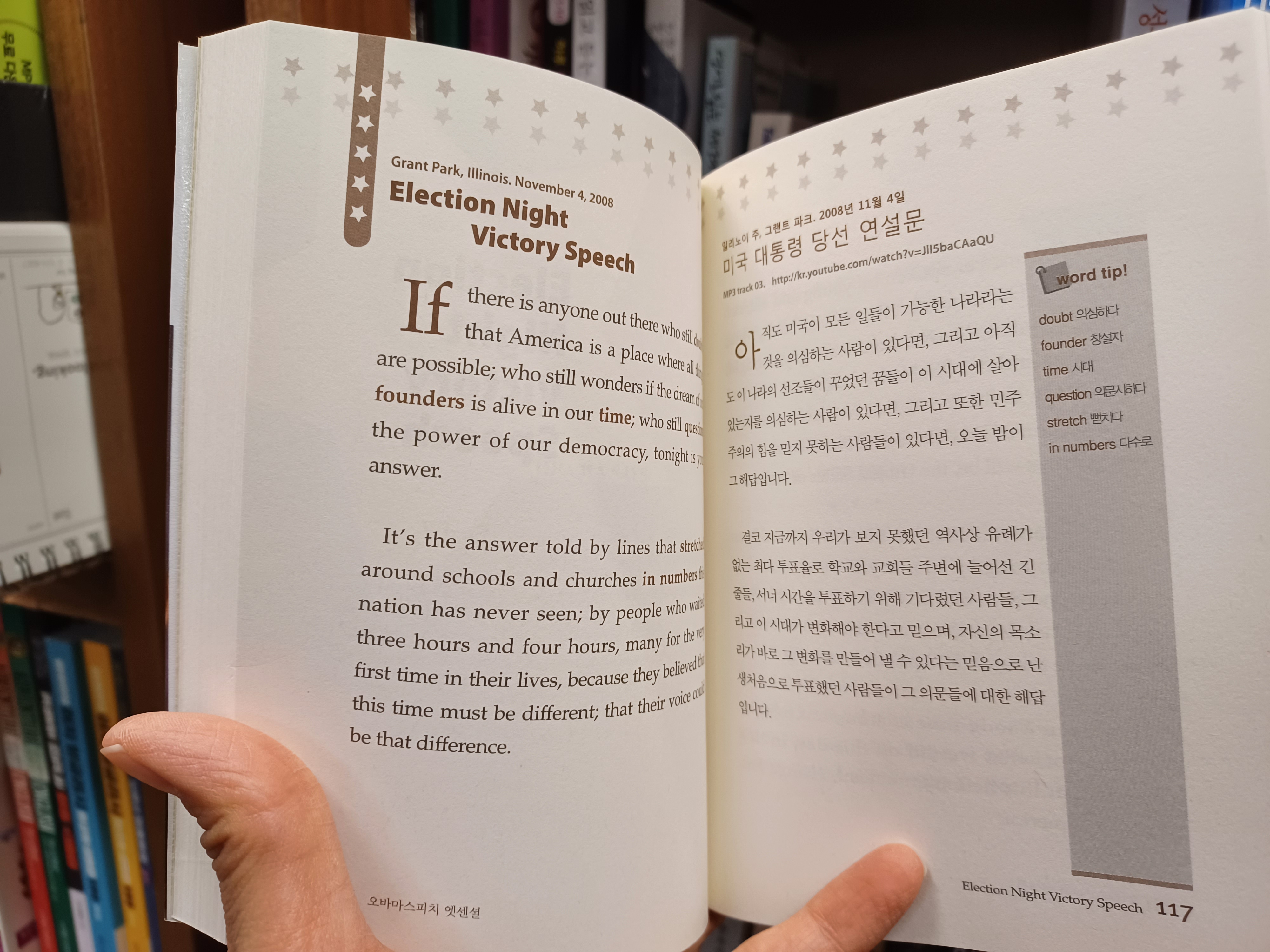 광화문 교보문고 G0-24 책꽂이에는 필사하거나 외우기 좋은 스피치나 글을 모은 책들이 있다.