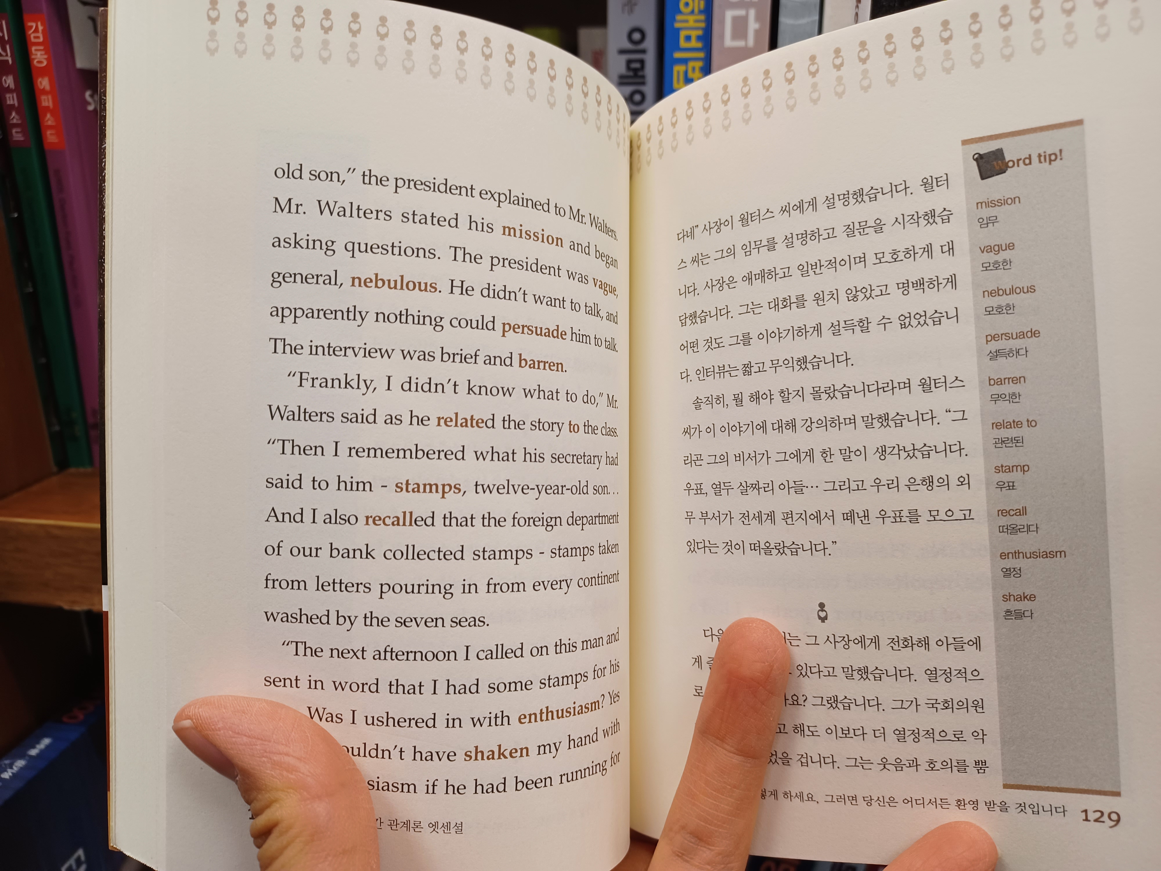 문장과 해석을 일대일로 매치 시키기가 번거로울 수 있어, 영어 독해 많이 못 하는 사람은 피로도가 높을 것 같다.
