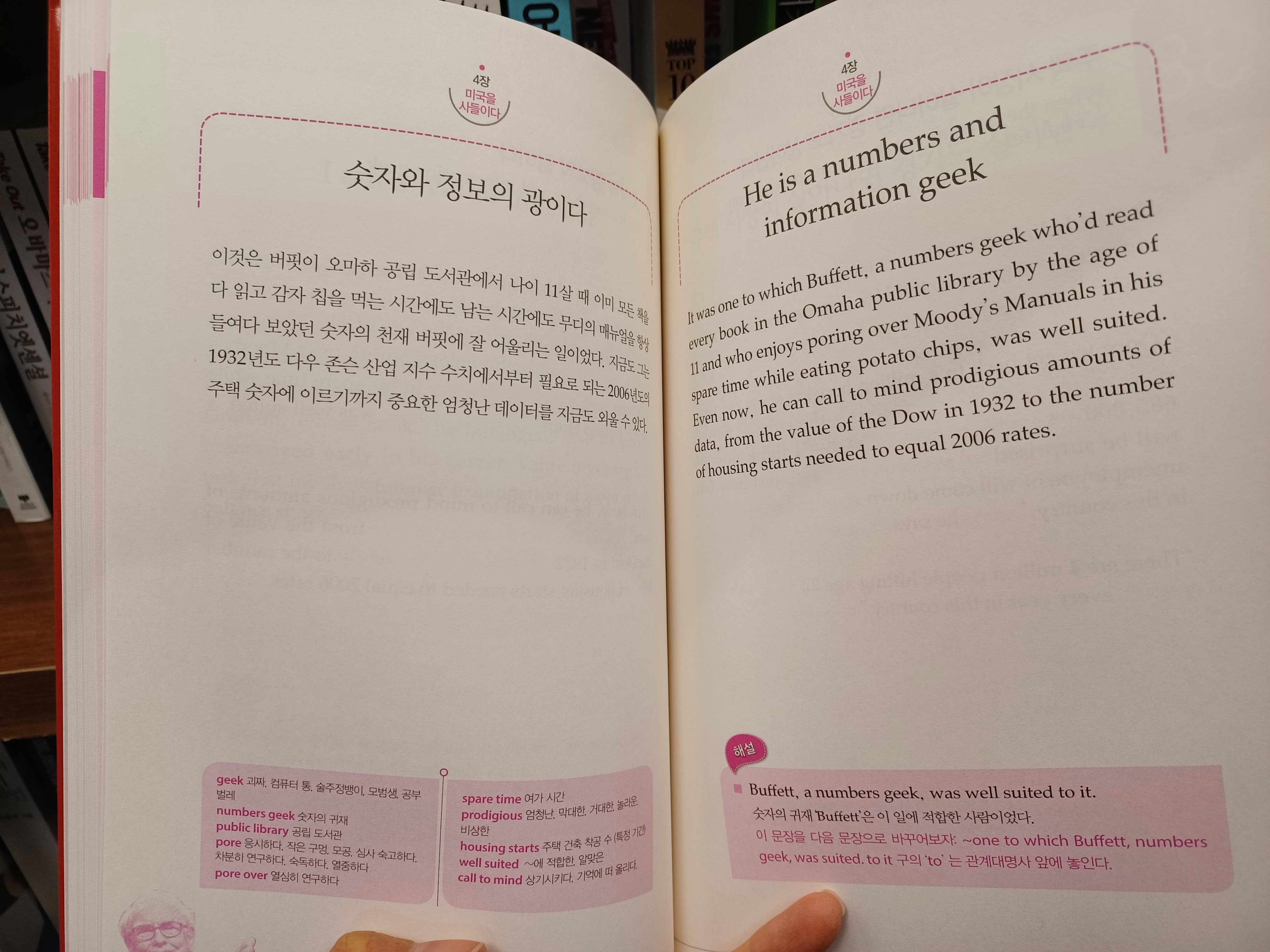 문장과 해석을 일대일로 매치 시키기가 번거로울 수 있어, 영어 독해 많이 못 하는 사람은 피로도가 높을 것 같다.