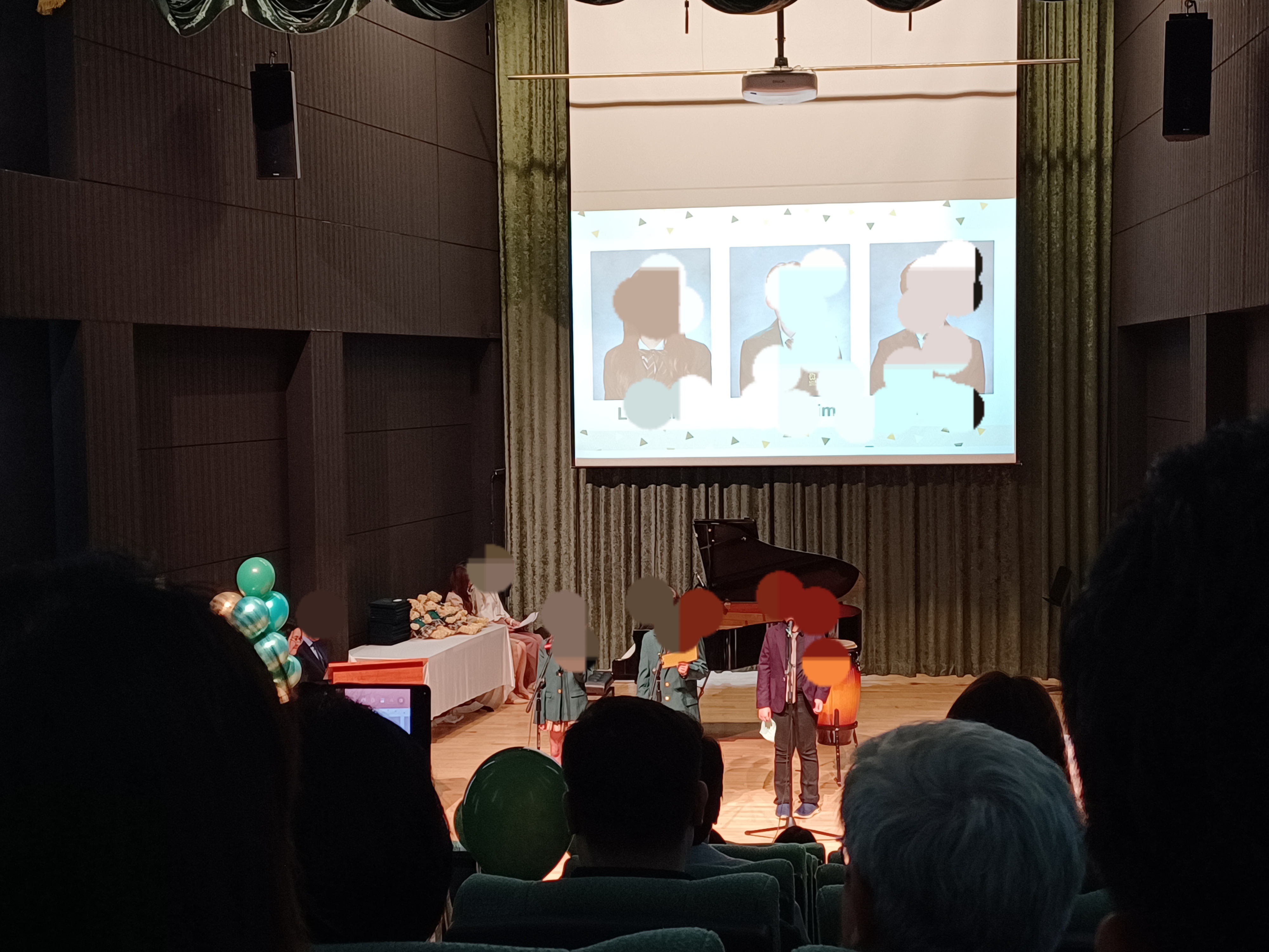 5학년 아이들 몇 명이 악기 연주 하고, 교장선생님 말씀, 목사님 기도 등이 있었다.