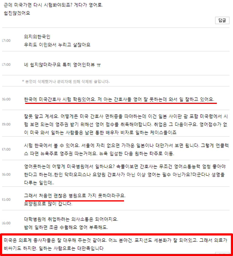 참고로 미국 내 한인 미씨 커뮤니티기 때문에 간호사 종사자나 간호사 출신도 많이 있습니다.