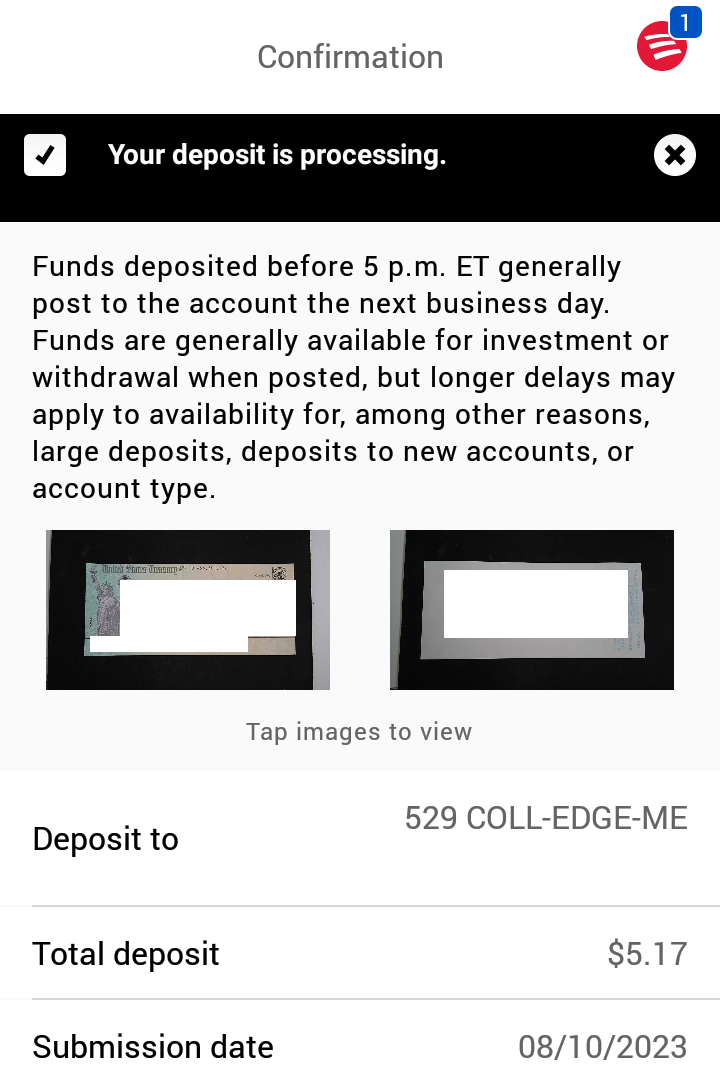 가장 하단의 "Deposit Checks" 아이콘을 선택한다.