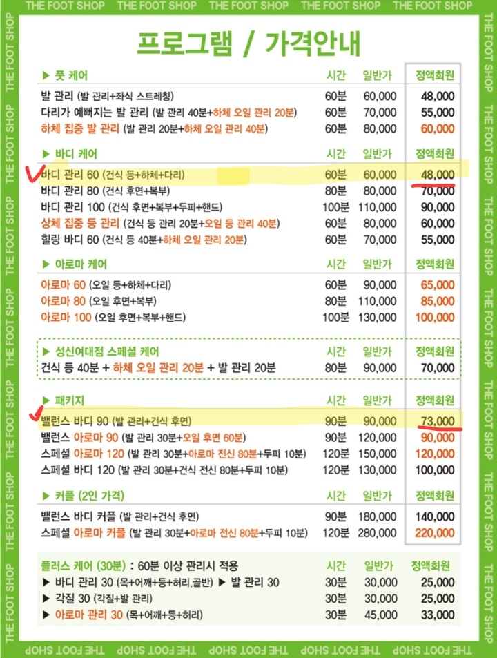 주의할 점은 의외로 오래 받는 상품이라고 분당 가격이 싼 게 아니다. 대충 계산해 보니 60분에 4만 8천 원짜리 건식 바디 케어가 제일 싸다. 60분 마사지가 너무 짧으면 건식 80분보다는 밸런스 바디 90분이 더 가성비가 좋다.