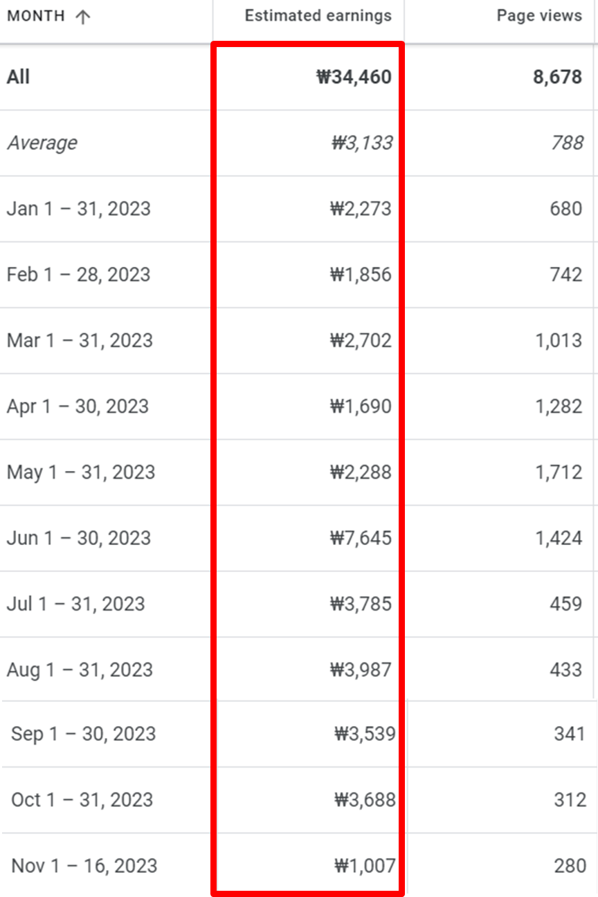 하지만 이 자동광고수익은 글 쓰는데 들어가는 시간과 노력과 비교하면 매우 보잘것없는 수준입니다.