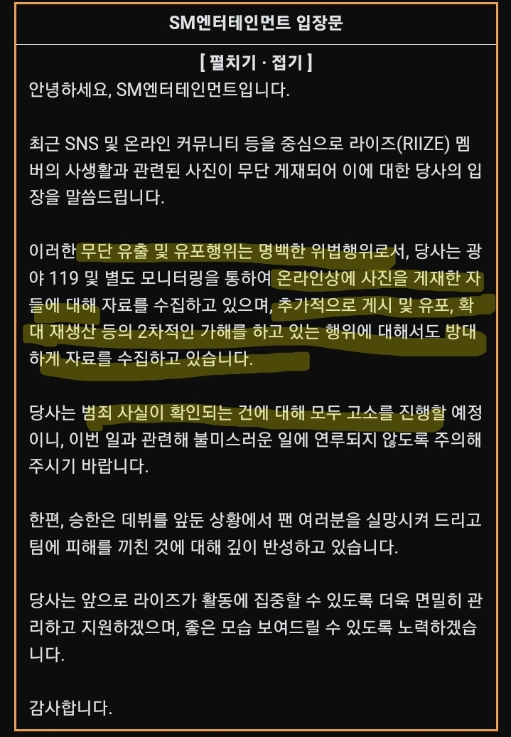 사람들이 스엠의 법적 대응이 두려워서 이제 인터넷에서 찾기 힘들지만, 몇 달 전에 승한이 여자친구(?)와 모텔에서 키스하는 사진과 길거리에서 담배를 피는 동영상이 소셜 미디어를 휩쓴 적이 있었습니다. 이 내용이 나무위키에 언급된 것입니다.