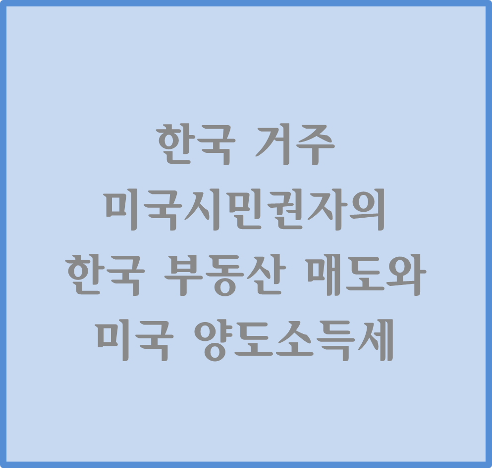 #세금 #미국세금 #한국부동산세금 #양도소득세 #이중과세방지협정 #검은머리미국인 #부동산개인명의 #개인부동산