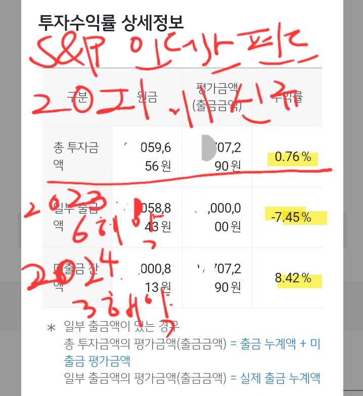 6월 말에 현재 반전세로 살고 있는 임차인이 퇴거한다. 사정상 새 임차인은 두지 않고 용도변경하거나 철거를 하려고 한다. 현재 임차인이 퇴거하기 3달 전이여서 슬슬 반환해야 할 보증금 마련을 해야 한다. 일단 현재 임차인에게서 받은 보증금 일부가 거치식 통장에 있다. 내 일반 통장에는 몇백만 원이 예치되어 있다. 2022년과 2023년 내내 마이너스였던 미국 주식 인덱스 펀드 상품이 플러스로 돌아왔길래 일부를 해약했다. 사실 이 돈의 대부분은 전 임차인에게서 받았던 임차 보증금이다. 이 돈들을 다 모아서 3개월짜리 거치식 통장 정기예금에 넣을 것이다. 그리고 향후 몇 달간 내 일반통장에 들어올 돈이 있는데 최대한 아끼고 아낄 것이다. 그리고 6월 중순까지 반환 반전세 보증금이 얼마나 모였나 돈 사정을 보고서 모자란 돈만큼 미국 주식 펀드를 부분 해약할 것이다. 이번 년도 전반기에는 미국 나스닥지수나 에스앤피 지수가 오를 것 같다. 하지만 주식시장에는 예상 못하는 변수가 항상 존재해서 몰빵은 리스크가 크다. 특히 2022, 2023년을 보내면서 내 펀드 평가금액이 마이너스인 와중에 돈이 필요해서, 펀드를 일부 해약해 손실금액을 확정한 적이 있다. 나는 이 리스크를 실제로 경험했었다. 그래서 앞으로 먹을 수 있는 수익을 포기하더라도 현재 펀드를 해약할 수밖에 없다. 참고로 에스앤피 인덱스 펀드는 작년에 해약한 건과 이번 해약 건을 종합하면 2년 동안 거의 본전 치기나 마찬가지이다. #재테크 #임차보증금 #전세보증금 #리스크관리 #kb펀드