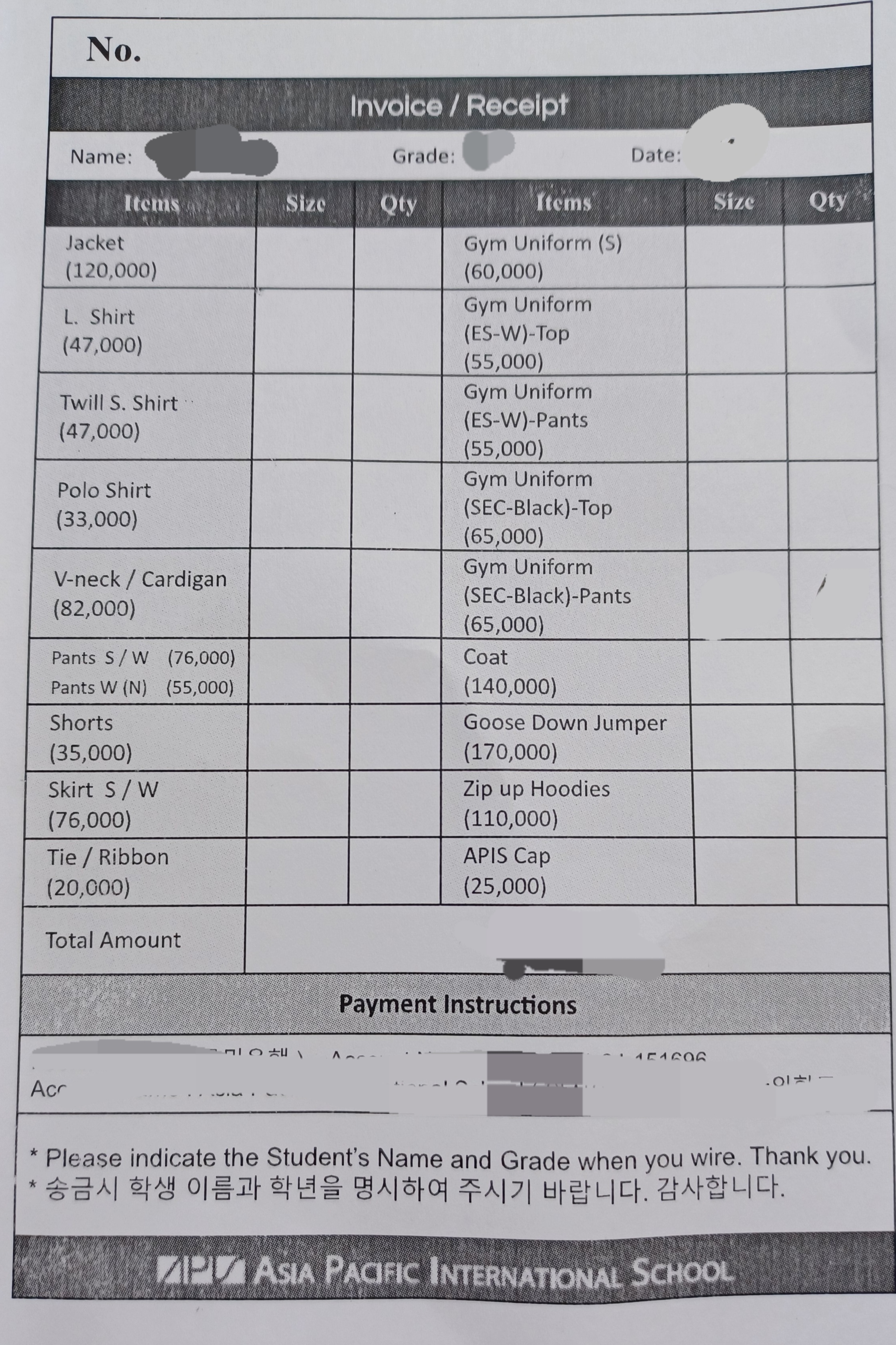 #아시아퍼시픽외국인학교 #아시아퍼시픽국제외국인학교 #서울소재외국인학교 #학교교복 #학교유니폼 #외국인학교유니폼