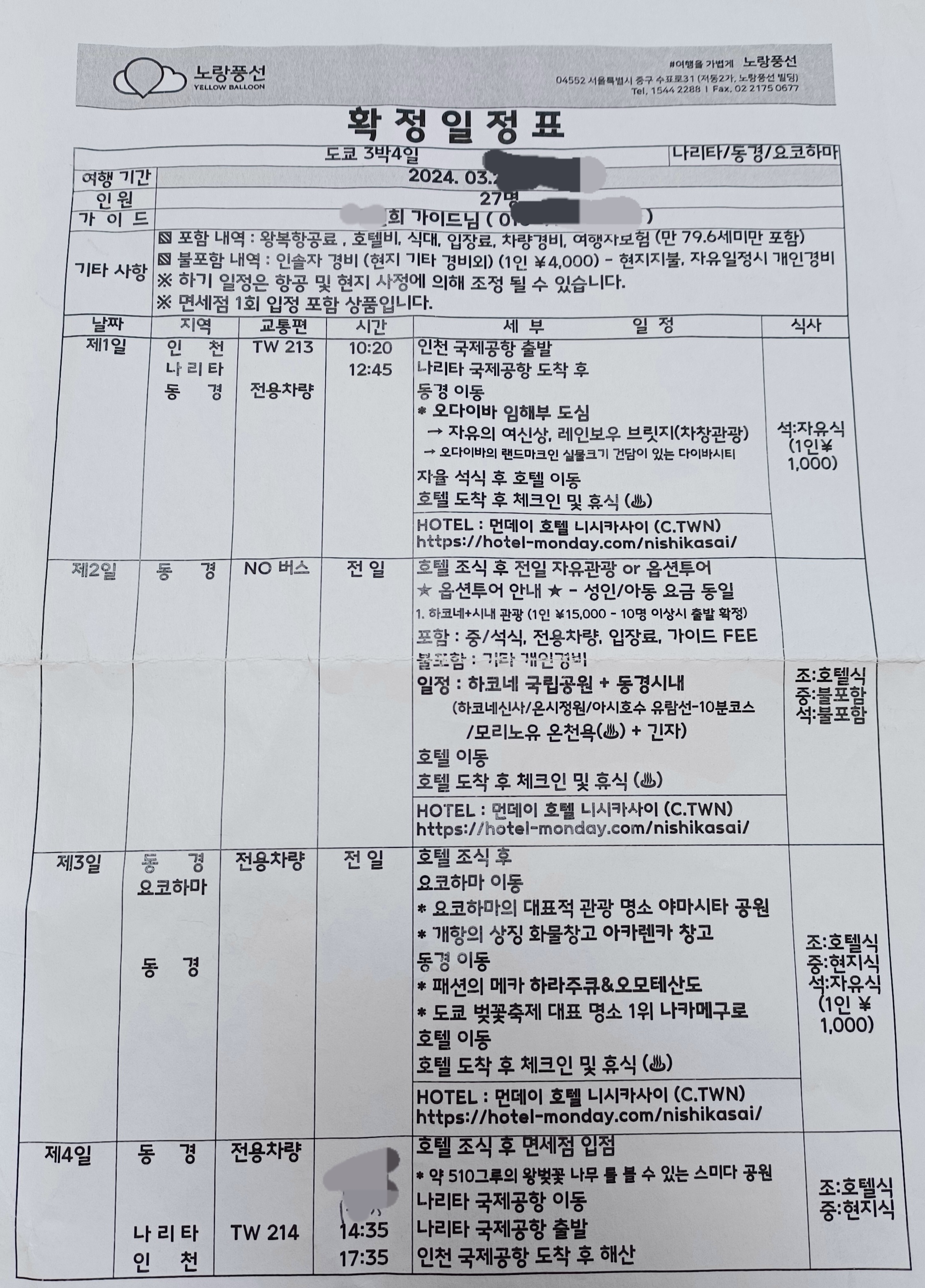 | 3박4일 도쿄 세미패키지 및 자유 비용 경비 (0) | 2024.03.31 |