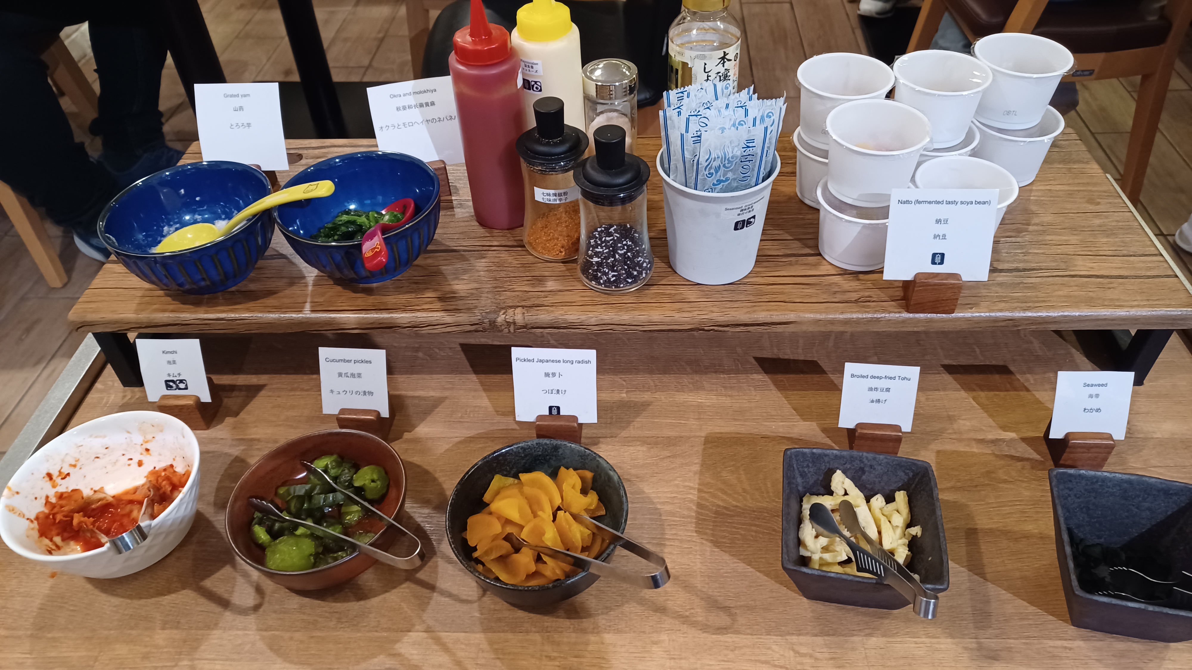 호텔조식은 과일이 좀 부족한 감이 있고 단출했으나 샐러드, 밥과 카레, 스키야키, 누들, 베이컨, 소시지, 계란(일본식 계란말이, 써니 사이드업 계란프라이, 스크램블 에그), 생선, 낫또, 곤약, 일본식 간단 덮밥 재료, 빵 2-3종, 주스, 일본차, 우유, 커피 등 다양한 아침식사 취향을 만족시킬 수 있었습니다.