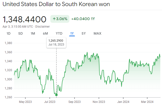 작년 7월에 1달러 당 1260원 대의 환율인 적도 있었습니다.