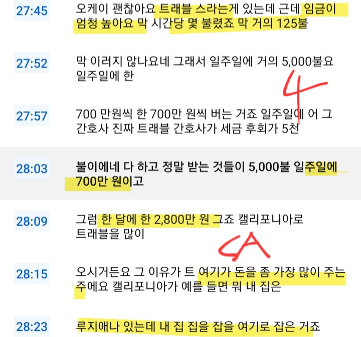 유튜브 특성상 급여 부분에 약간 과장이 있을 수는 있고, 세금 50퍼센트 낸다고 치더라도 한국 간호사 월급에 비해 아주 많다.