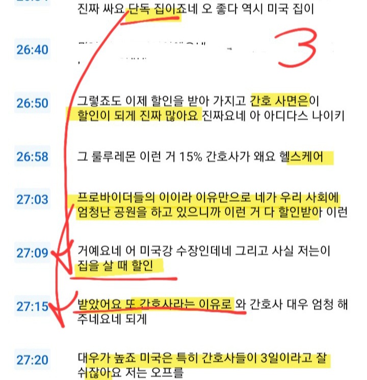 각종 소비재에 대한 할인 뿐만 아니라, 그녀가 살고 있는 집을 구매했을 때, 간호사라는 이유로 할인 혜택을 받았다고 한다.