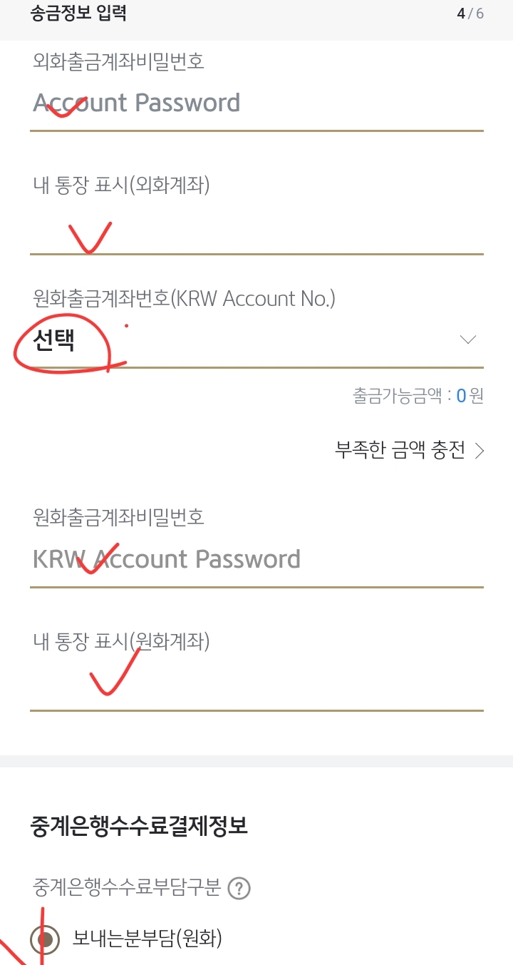 저는 국민은행의 달러계좌의 달러와 원화통장 원을 달러로 환전해서 보내는 방법을 선택했습니다.