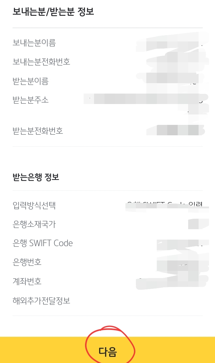 입력한 정보다 다 맞으면 다음을 누릅니다.