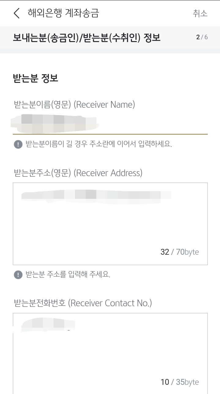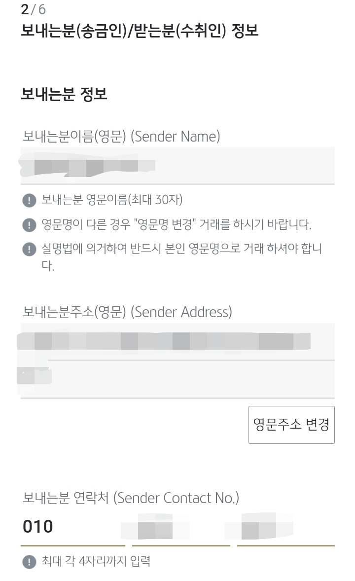 과거에 송금 보냈던 제 계좌정보가 뜹니다. 여기서 미국은행 스위프트 코드검증을 해야 진행이 됩니다.