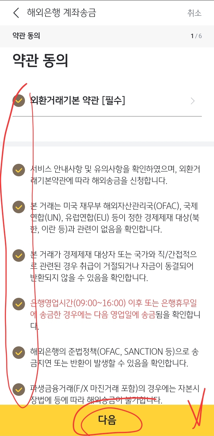 외국인국내급여 송금을 체크하고 다음을 누릅니다