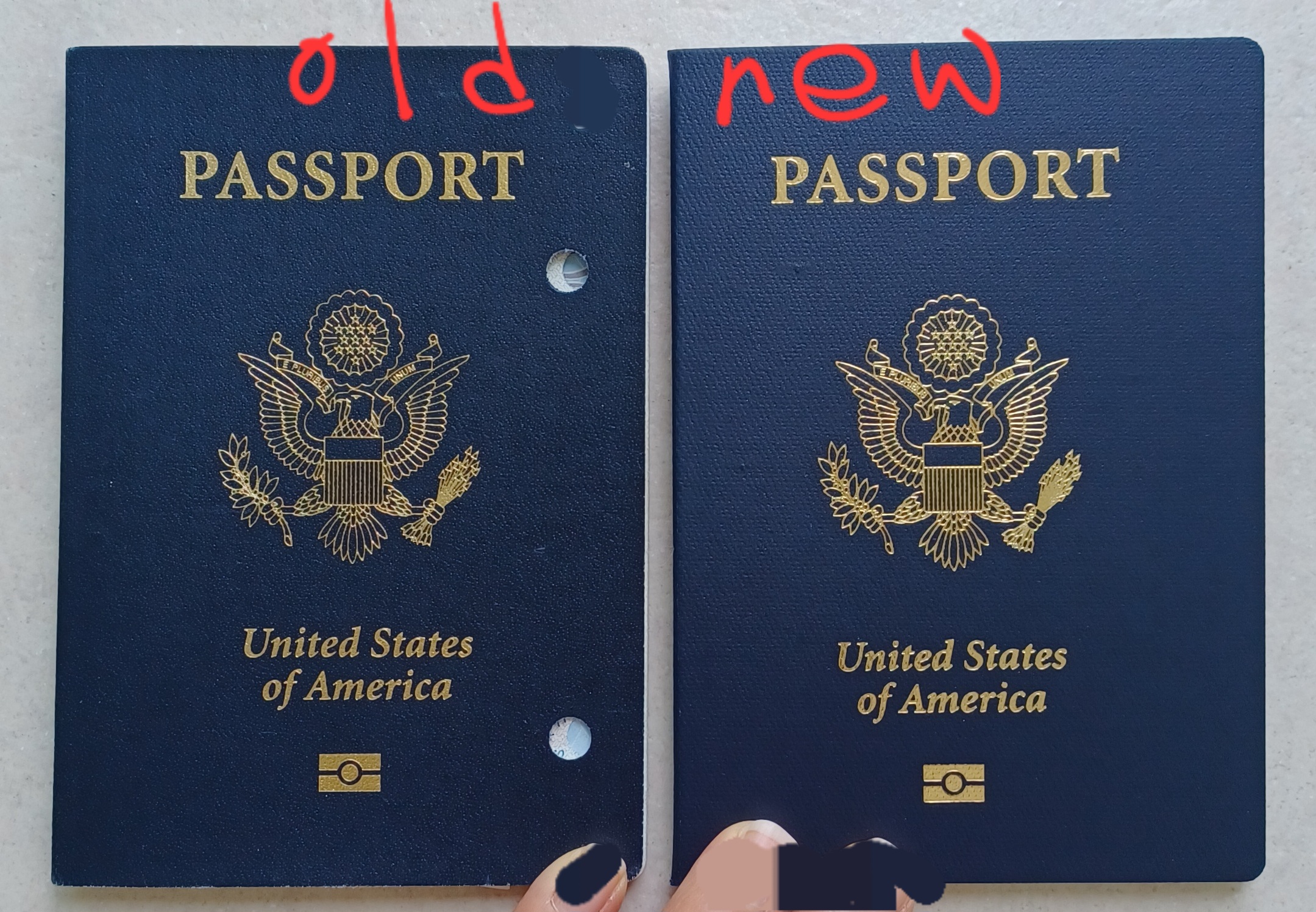 예전에 쓴 여권(좌), 올해 받은 여권(우)
