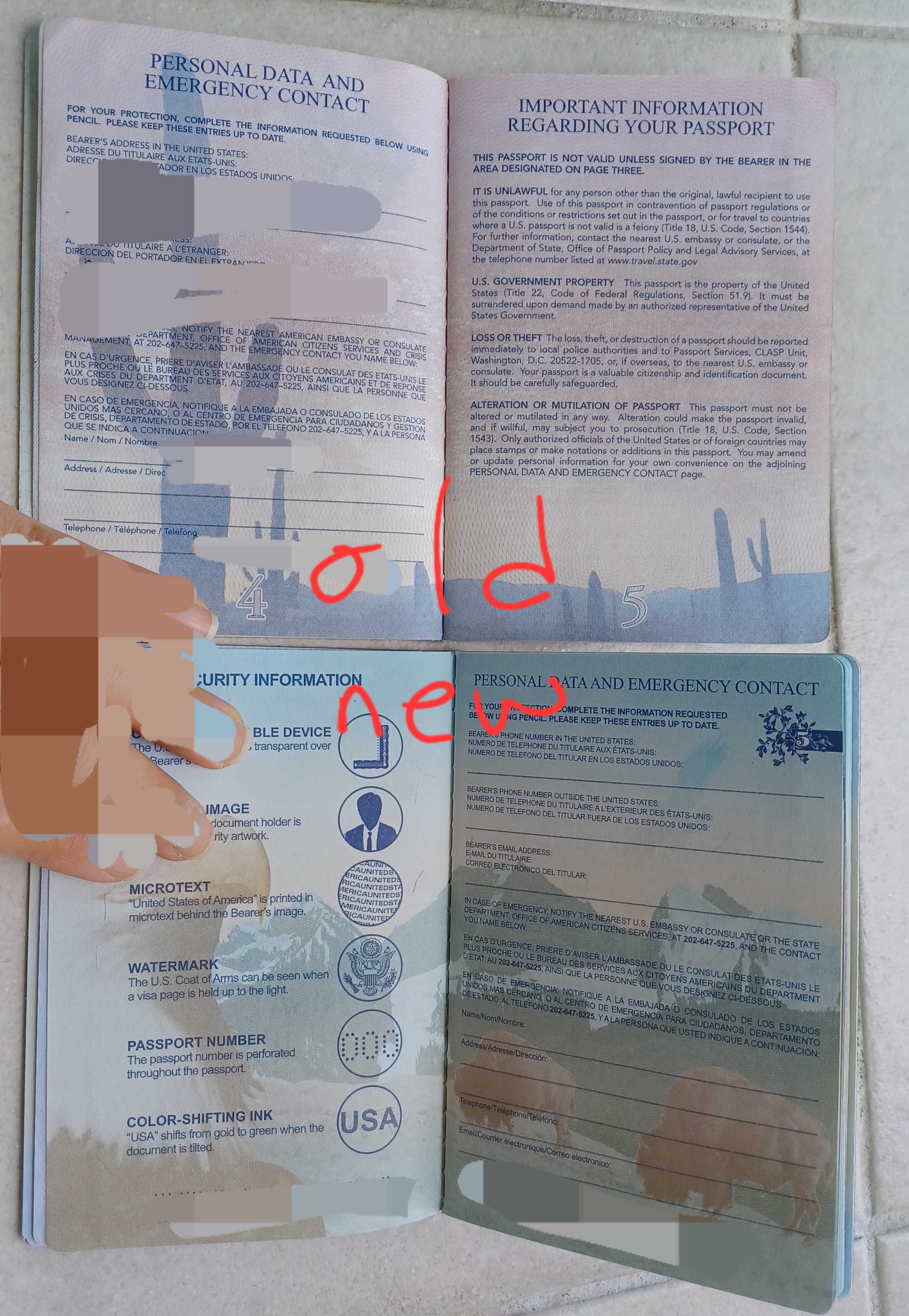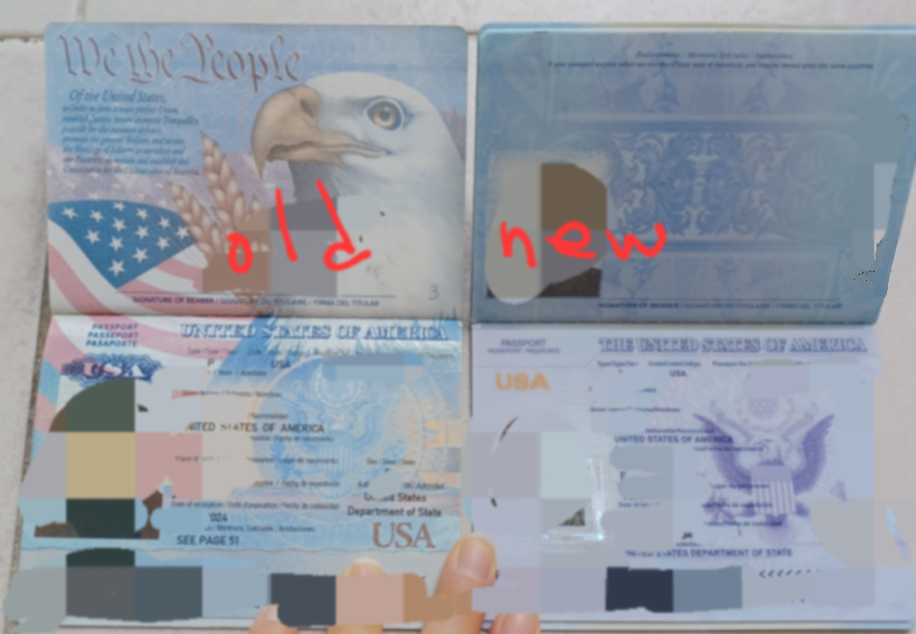 예전 여권에는 미국스럽게도 "We the People", 독수리 머리, 미국 국기가 너무 적나라하게 배치되어 있었습니다.