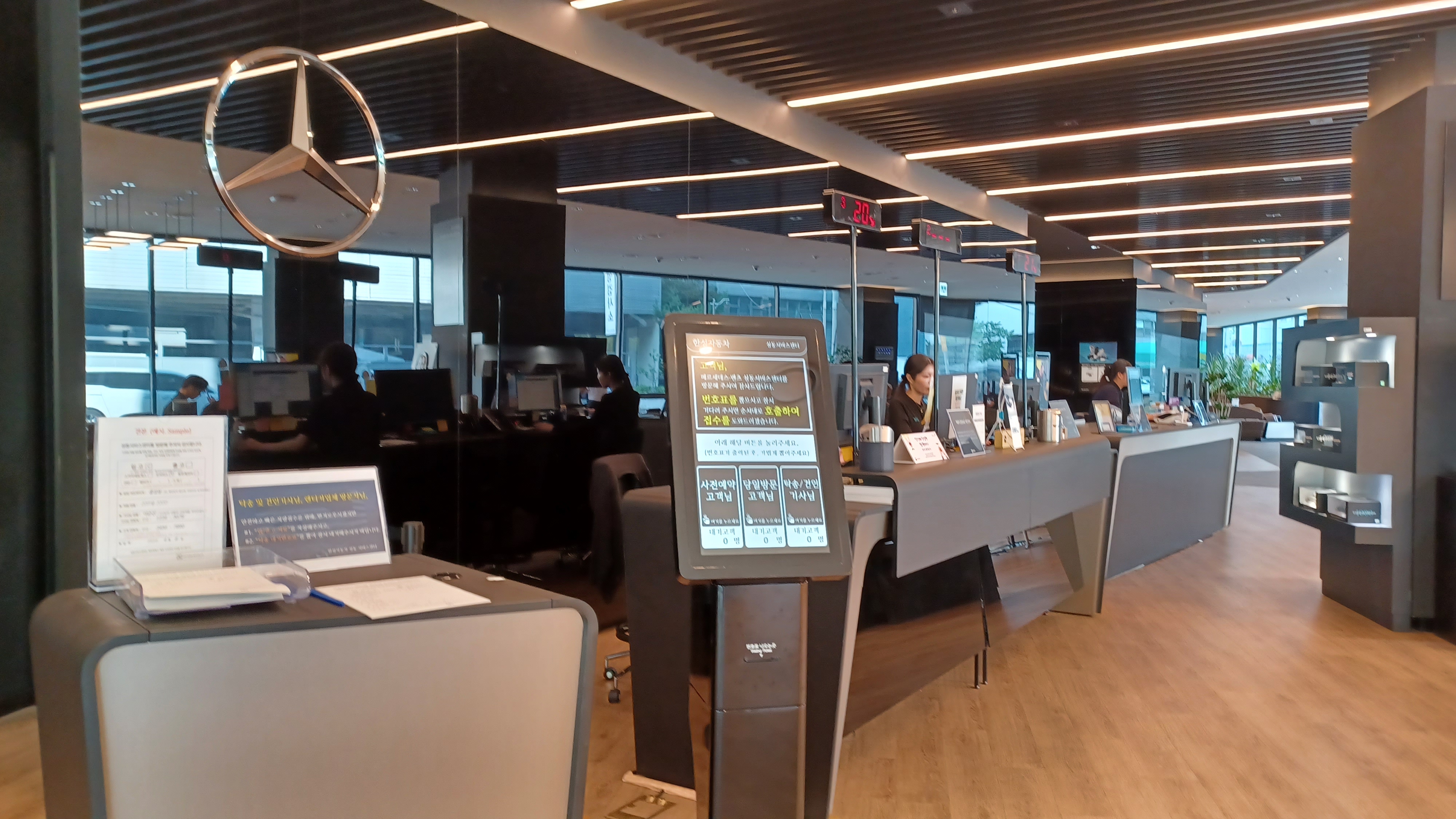 엔지니어들이 거의 풀로 업무가 있기 때문에 현장 접수는 거의 힘들고 미리 예약을 하고 와야 합니다. 저는 인터넷으로 예약이 너무 힘들어서 지난주에 이 서비스센터에 와서 예악하고 이번에 다시 온 것입니다. 접수데스크 앞의 화면에서 번호표를 뽑으면 직원이 번호를 호명하고 접수를 도와줍니다. 좀 지나면 배정된 엔지니어가 제 차번호 네 자리를 부르며 저를 찾습니다. 저는 이 부분을 개선해야 한다고 생각합니다. 삼성서비스센터나 은행처럼 개선해서 차번호와 상담창구를 따로 마련해놓고 화면으로 정보를 알려주면 직원이 서비스센터를 돌아다니면서 큰소리로 차주인을 찾을 수고가 줄어들 텐데요. 1층 중간쯤에 골프용품, 스마트 키커버, 지갑 등을 파는 섹션이 있습니다. 바로 근처에는 커피나 음료를 마실 수 있는 카운터탑이 있습니다. 네스프레소 캡슐커피, 믹스 커피, 캔음료, 사탕, 정수기 등이 있습니다. 이날 한 작업으로 몇 가지가 있었습니다. 저는 몇 년 전에 서비스 패키지를 샀었는데, 유효기간이 며칠 안 남아서 다 썼습니다. 얼마 전에 리콜 편지를 받았었는데, 엔지니어가 이날 확인해 보니 제 차는 이미 업데이트되어서 고칠 필요가 없다고 했습니다. 기타 엔진오일교체와 브레이크 패드 교체로 45만 원 정도가 지출되었습니다.