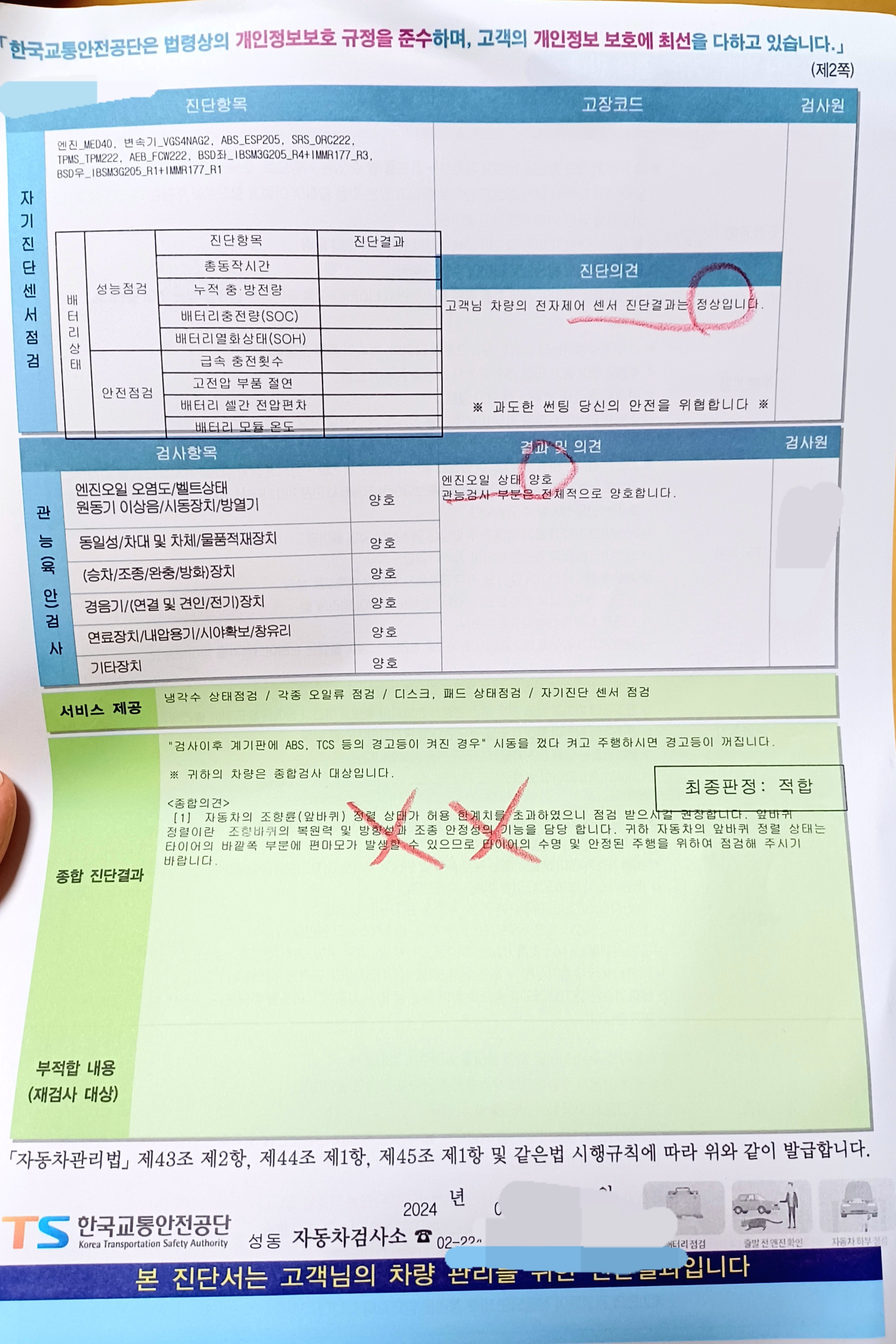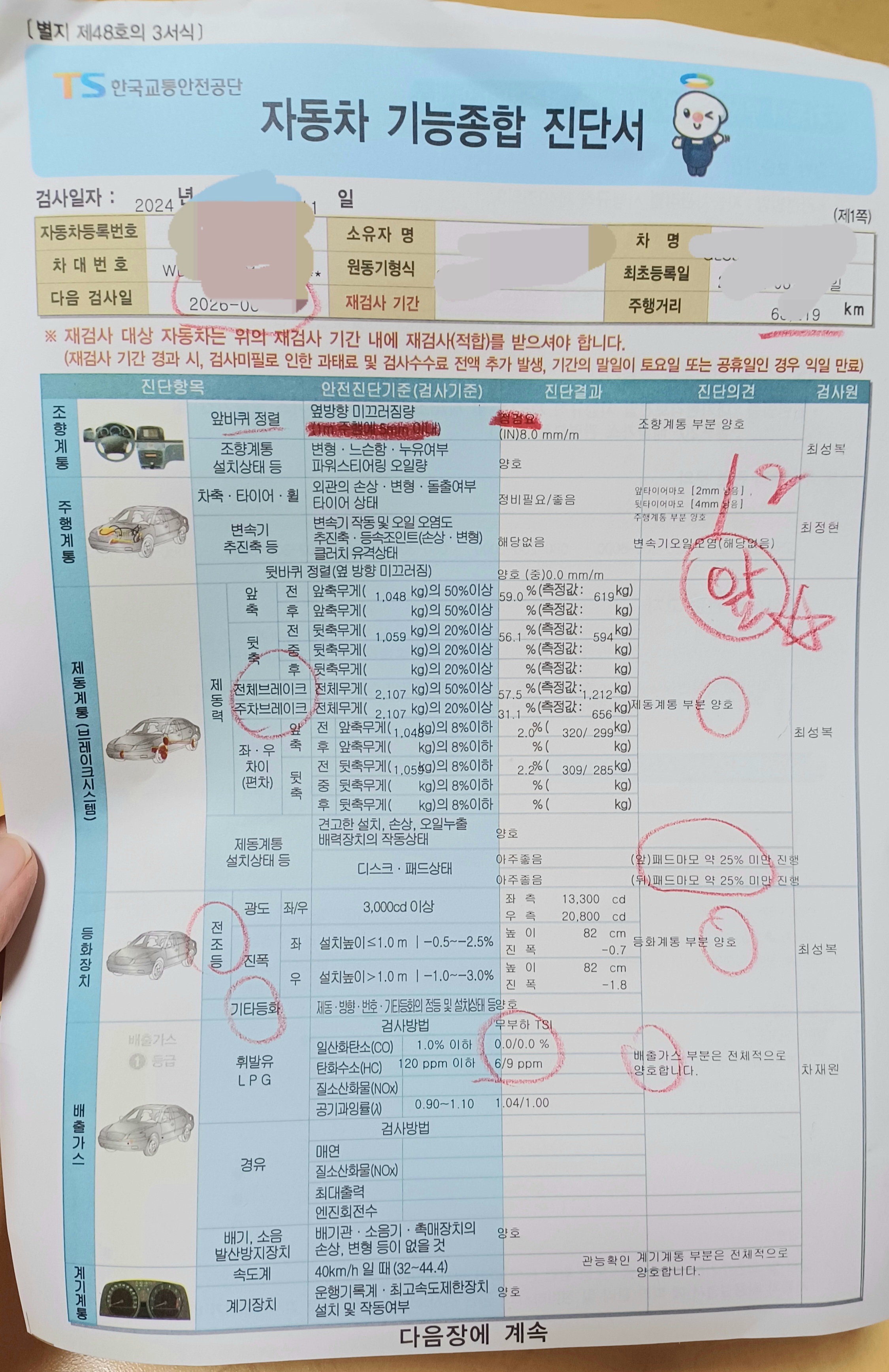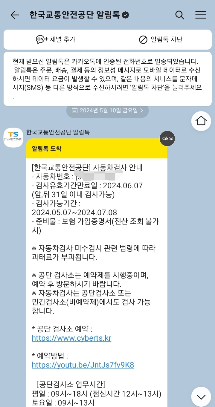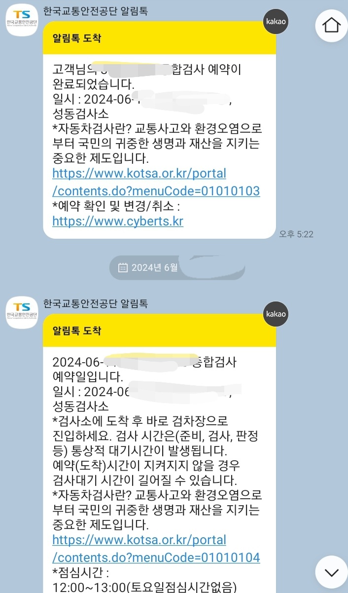 한국에서는 2년에 한 번씩 자동차를 한국교통안전공단에서 실시하는 자동차검사를 받아야 합니다. 예전에 카톡으로 일을 처리했는지 어느 날 한국교통안전공단에서 알림톡이 왔더군요. 그래서 안내 링크로 검사장소, 날짜, 시간을 예약을 했습니다. 검사일 전날에 알림톡이 와서 다시 리마인드를 시킵니다. 제가 자동차검사를 한 성동검사소에 아침에 도착했을 때는 줄이 길지 않습니다. 큰 글씨로 차 줄 서라고 하고 밖에 직원이 나와 있어서 어디로 갈지 안내합니다. (온라인 예약을 해서 차번호판 보고 파악하는 것 같습니다) 검사 건물에 차가 들어가면 검사직원이 차키를 차에 놔두고 내리라고 합니다. 따로 제출해야 하는 서류는 없습니다. 그래서 대기실에 가서 자동차 검사가 끝나길 기다렸습니다. 이십 분쯤 지나자 담당직원이 와서 검사 결과지를 주며 자동차 브레이크 페달, 타이어 두께, 배기량, 엔진오일 등 자동차 상태에 대해 설명해 줬습니다. 직원들이 빨리빨리 검사를 진행해서 자동차 검사소에 도착한 지 30분 만에 모든 절차가 끝났습니다. 차를 몰고 집에 오는 길에 알림톡이 다시 와서 다음 검사일지를 공지했습니다. 예전에 낮시간에 검사했을 때는 엄청 시간이 많이 지체되었던 건을 생각하면 아침에 자동차 검사를 받는 건이 시간 절약 상 좋은 것 같습니다.