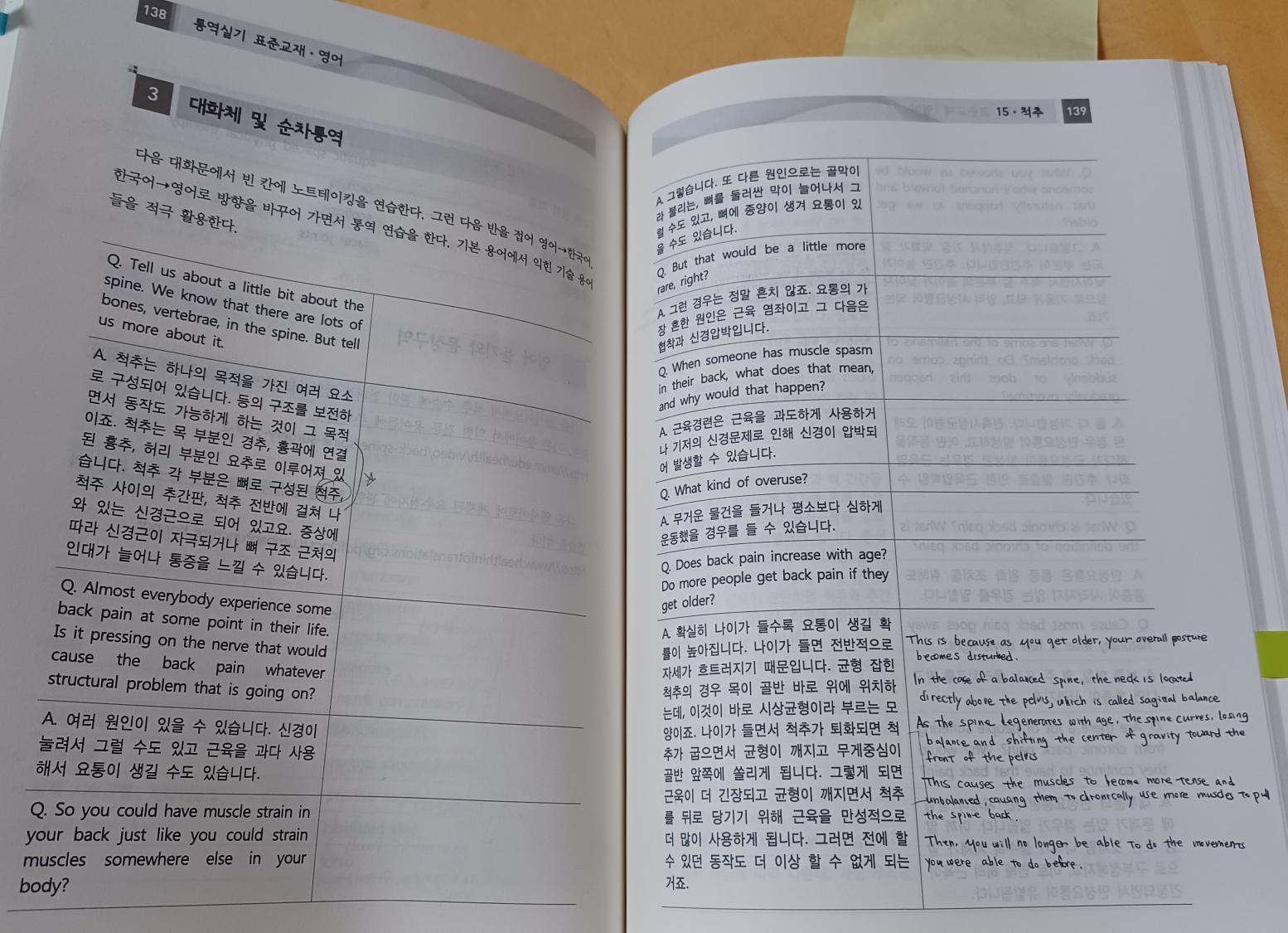 원래는 영어공부의 일환으로 의료영어를 공부하자는 마음으로 2024년 설 전후로 <한국의 의료통역사양성과정 통역실기 표준교재 영어>를 사서 세 달 공부했습니다.