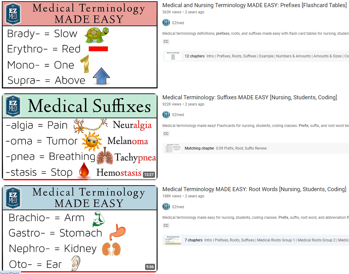 의료용어 어원 공부를 위해서는 EZmed의 비디오들을 두번 정도 보고 하나하나 필기를 하고 달달 암기했습니다.