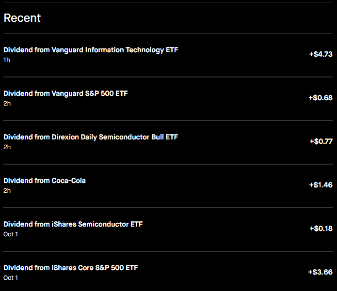 미국 주식을 시작한 지 어느덧 4년 반이 지났다. 배당보다는 성장주 위주로 사고 있지만, 주가 하락기나 정체기에는 배당금이라도 매달 들어와야지 마음에 위안이 된다. 2021년 이후로는 돈을 많이 넣지는 못하지만, 찔끔찍끔 주식을 사고 있다. 이번 해에는 배당금이 늘어나서 지난 7월에 월 배당금이 40불 넘는 것을 자축했는데, 10월에 예정된 배당금은 70불이 넘게 되었다. 사실 배당이 많아진 데에는 BITO, 즉 비트코인 선물 etf가 배당을 엄청 많이 주기 때문이다. 1년 전만 해도 조금 주었는데, 유독 이번 해에 많이 준다.