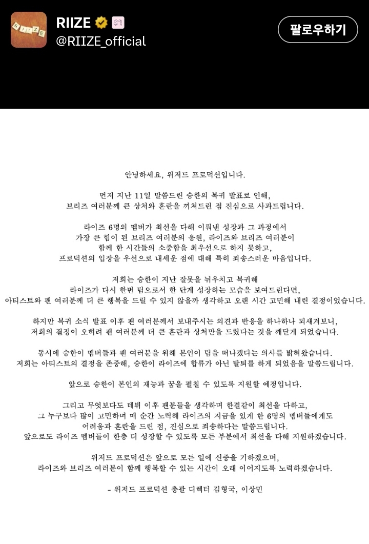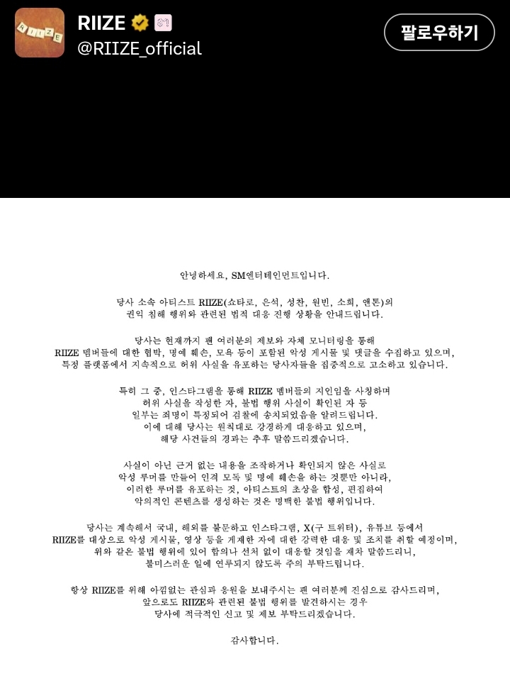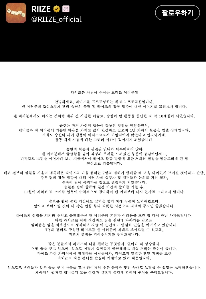 ※위 이미지는 라이즈 엑스 계정에서 스크린샷했습니다.