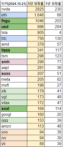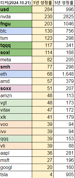 | 미국 주식 etf 가상자산 1년 5년 수익률 (2024 11 22) (0) | 2024.11.23 |
