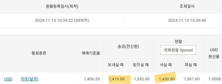 미화 9000불을 미국으로 옮길 경우에는 송금이 현찰을 원화에서 달러로 환전해서 직접 가져가는 것보다 조금 싼 것으로 계산이 되었습니다. 차이가 근소한 만큼 환전 금액과 환율의 변동에 따라서 결과가 다르게 나올 가능성이 큽니다.