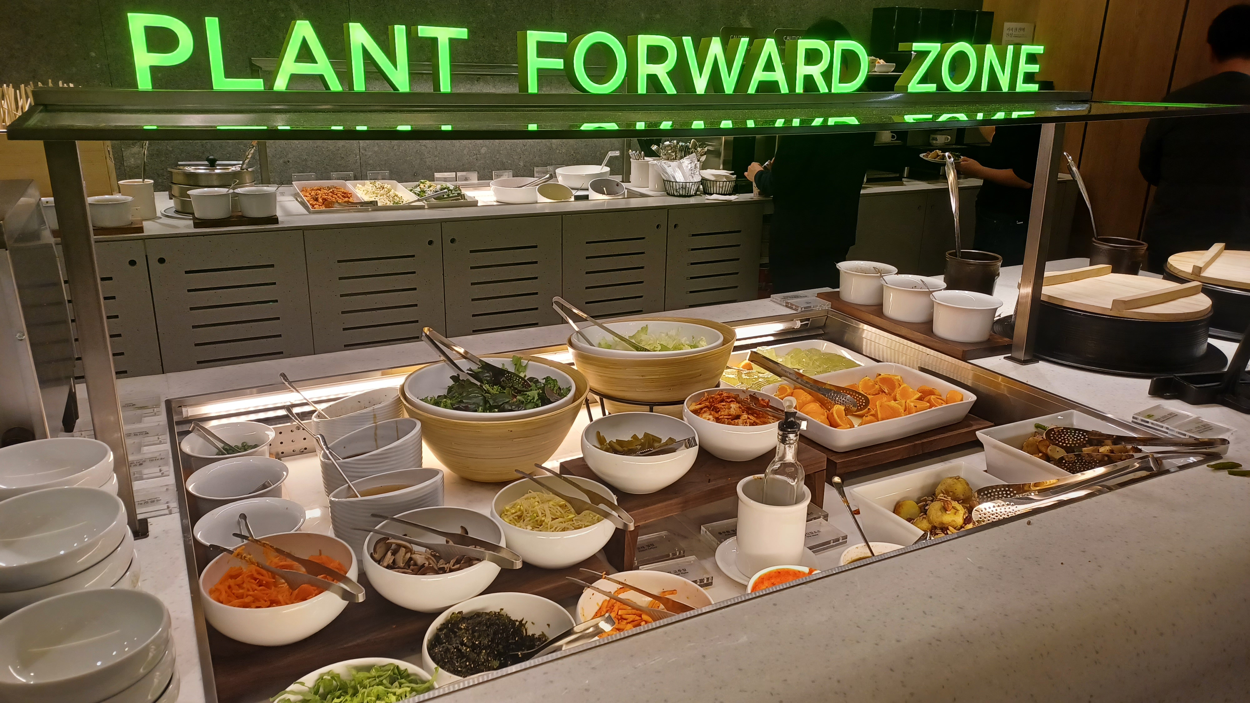 비빔밥 및 샐러드 바. 제대로 비빔밥을 먹을 수 있으면 한 끼 제대로 먹을 수도 있는데, 제가 쌀을 먹으면 체를 잘해서 안 먹었습니다.
