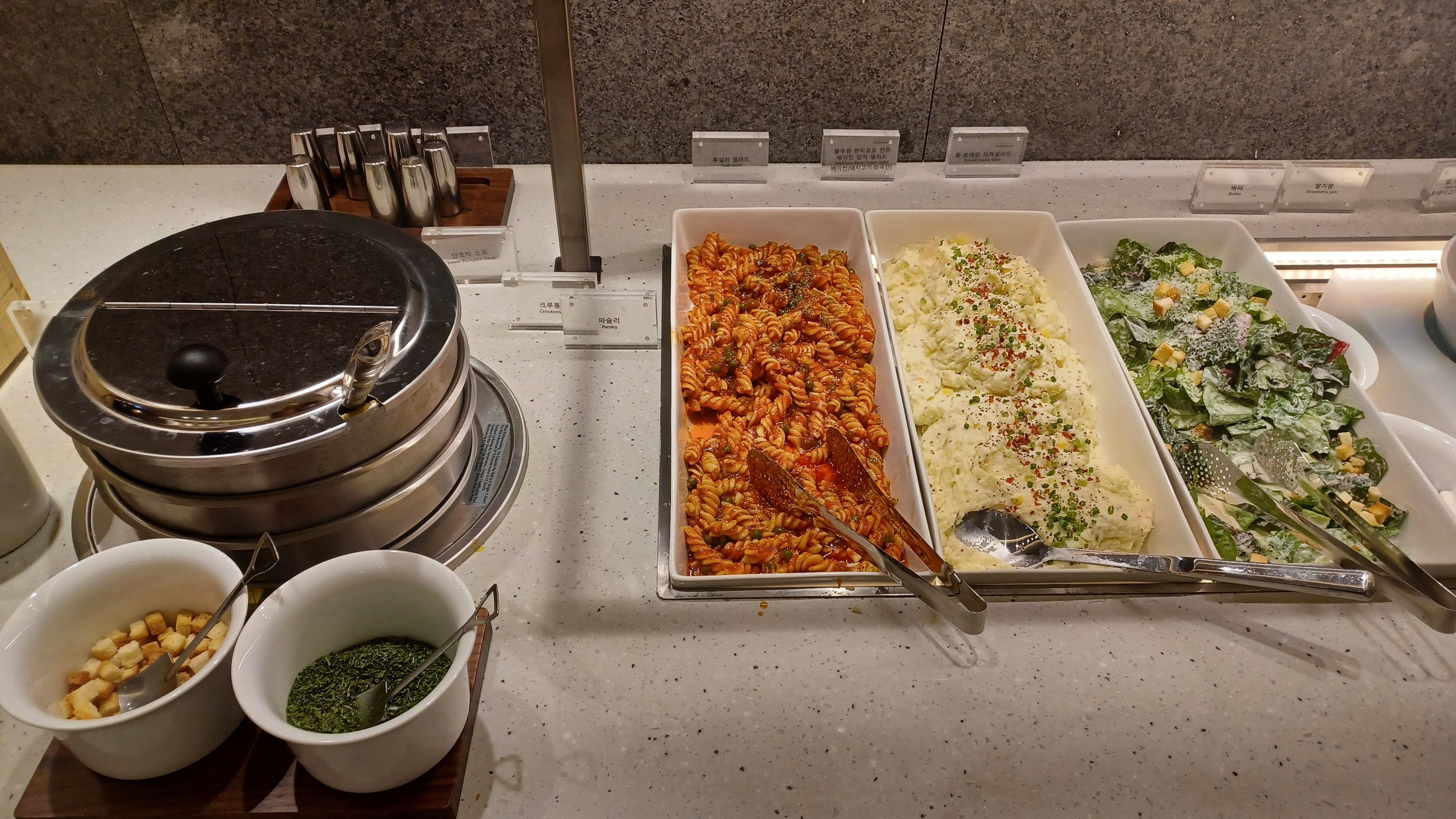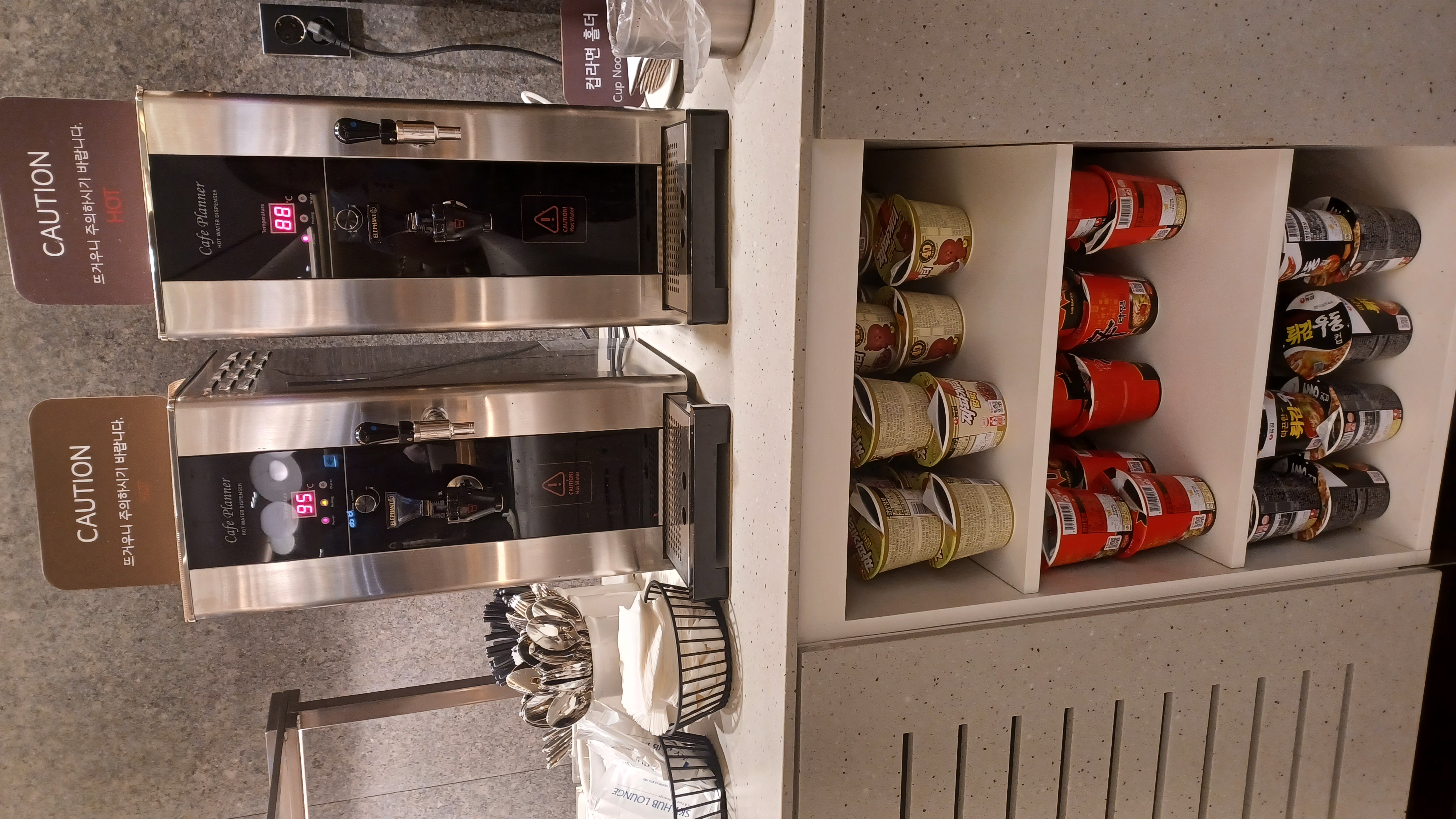 인터넷을 통해 공항에서 라운지라는 곳을 가면 밥도 먹고 휴식을 취할 수 있다고 해서 다녀왔습니다. 이번에 간 라운지는 인천국제공항 1 터미널 메인 건물에 위치한 스카이라운지입니다. 저는 kb국민 비자카드 계열을 썼는데, 저만 무료입장이고 10대 아이들은 성인 1+1으로 5만 5천 원 정도를 카드로 결제했습니다. 결론적으로 저희처럼 많이 안 먹고, 뷔페로는 덜 먹는 느낌 드는 사람들은 굳이 돈을 내면서 스카이라운지는 안 가도 될 것 같습니다. 특히 라운지 이용 후 탑승한 아시아나 로스앤젤레스 행 비행기에서 준 기내식양이 여자가 먹기에 많아서 더 그런 생각이 들었기도 하고요. 물론 저 혼자서 무료 입장할 수 있었으면 추천합니다. 스카이 라운지 사이즈는 작은데, 평일 점심시간에는 한산했습니다.