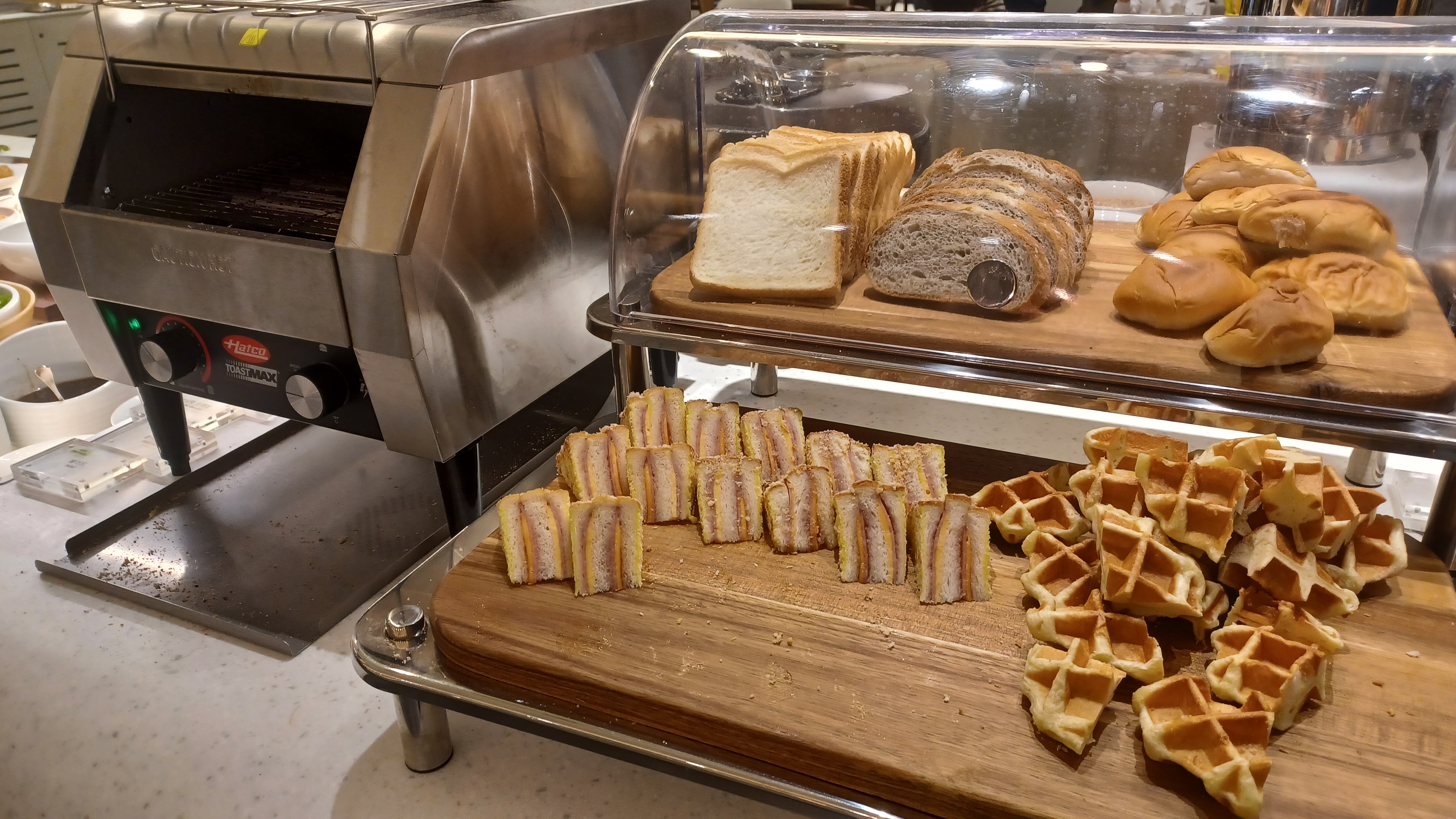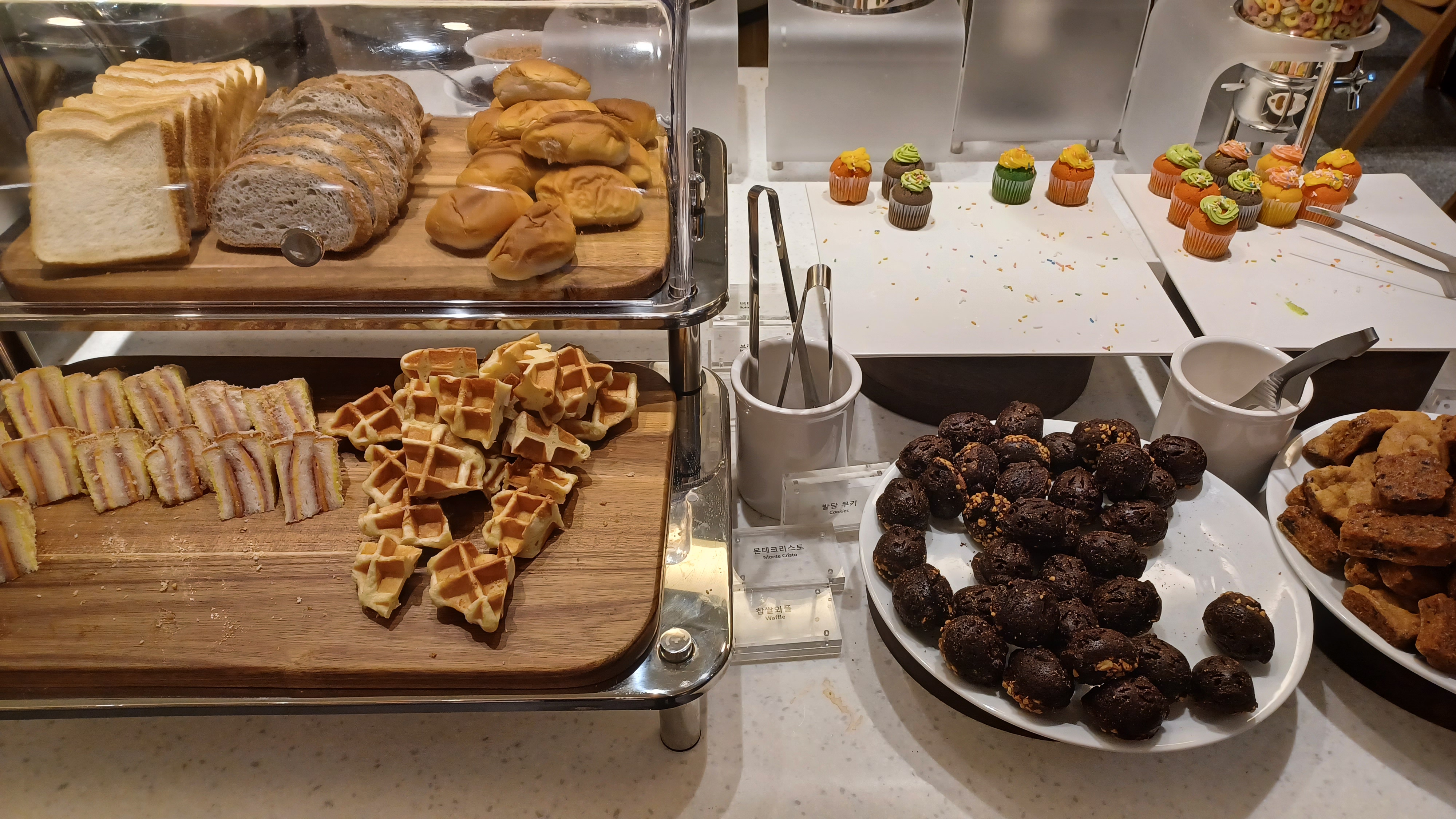 베이커리 섹션. 식빵, 멀티그레인빵, 디너롤, 몬테크리스토, 찹쌀와플. 이중에서는 찹쌀와플이 가장 맛있었어요. 컵케이크, 카카오도넛(?), 쿠키 중에서는 쿠키가 짭짤하고 소프트 베이크드래서 제일 맛있었습니다.