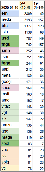 | 미국 주식 etf 가상자산 1년 5년 수익률 (2024 11 22) (0) | 2024.11.23 |