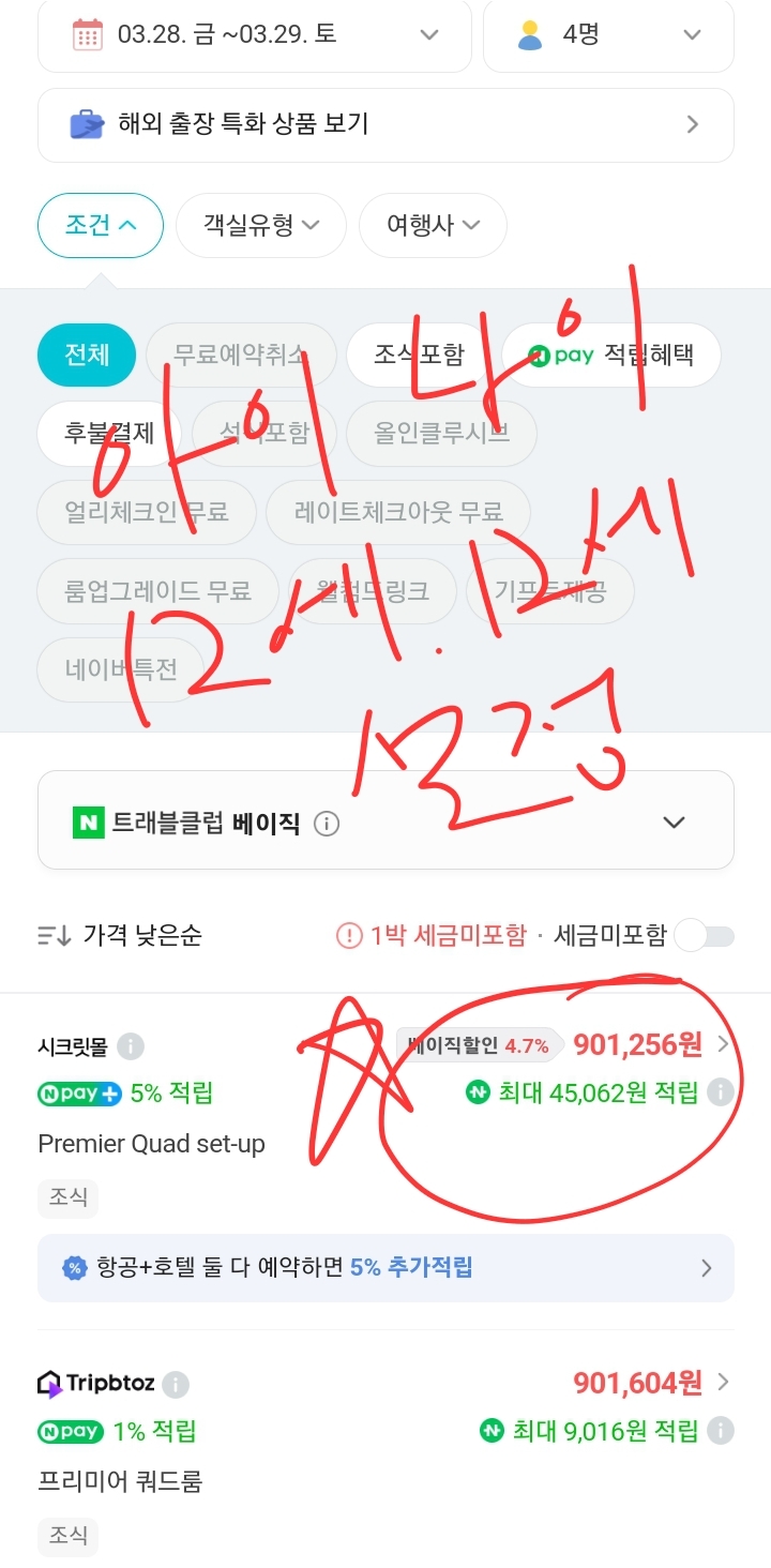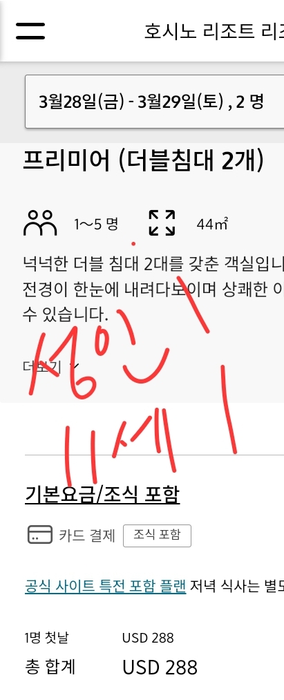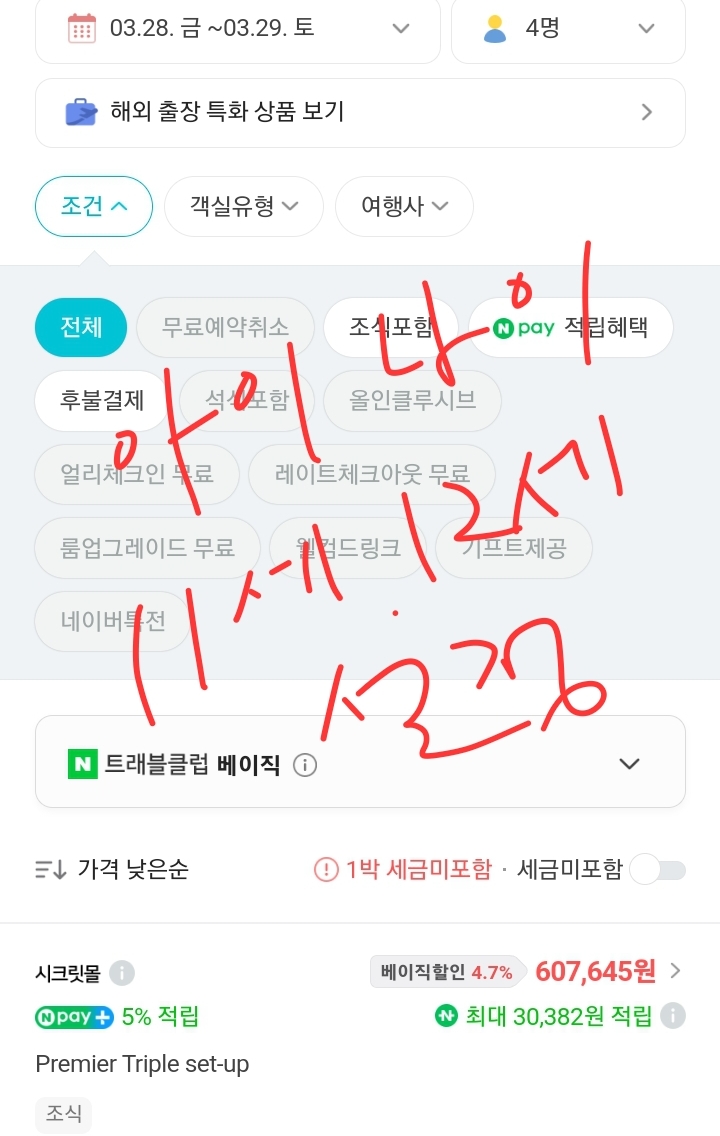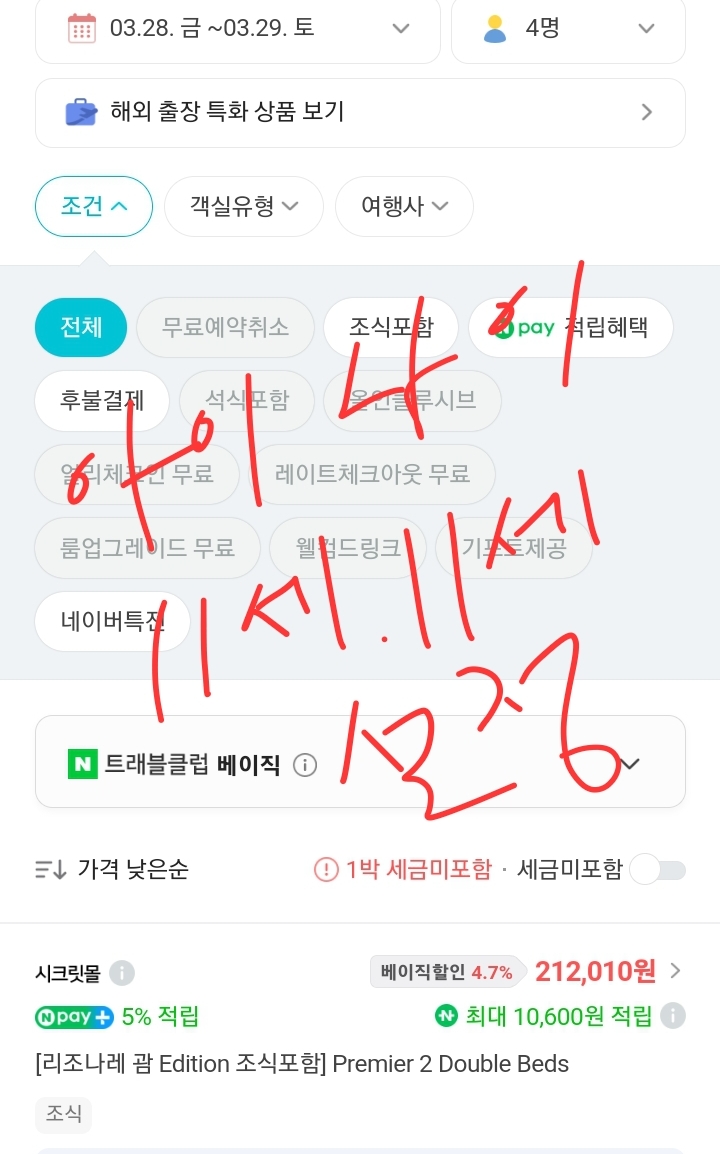 그런데 이 옵션으로 호텔 예약을 할 거면, 호텔 홈페이지보다는 네이버 검색, 혹은 여행 플랫폼을 통해 방을 예약하는 게 더 쌉니다.