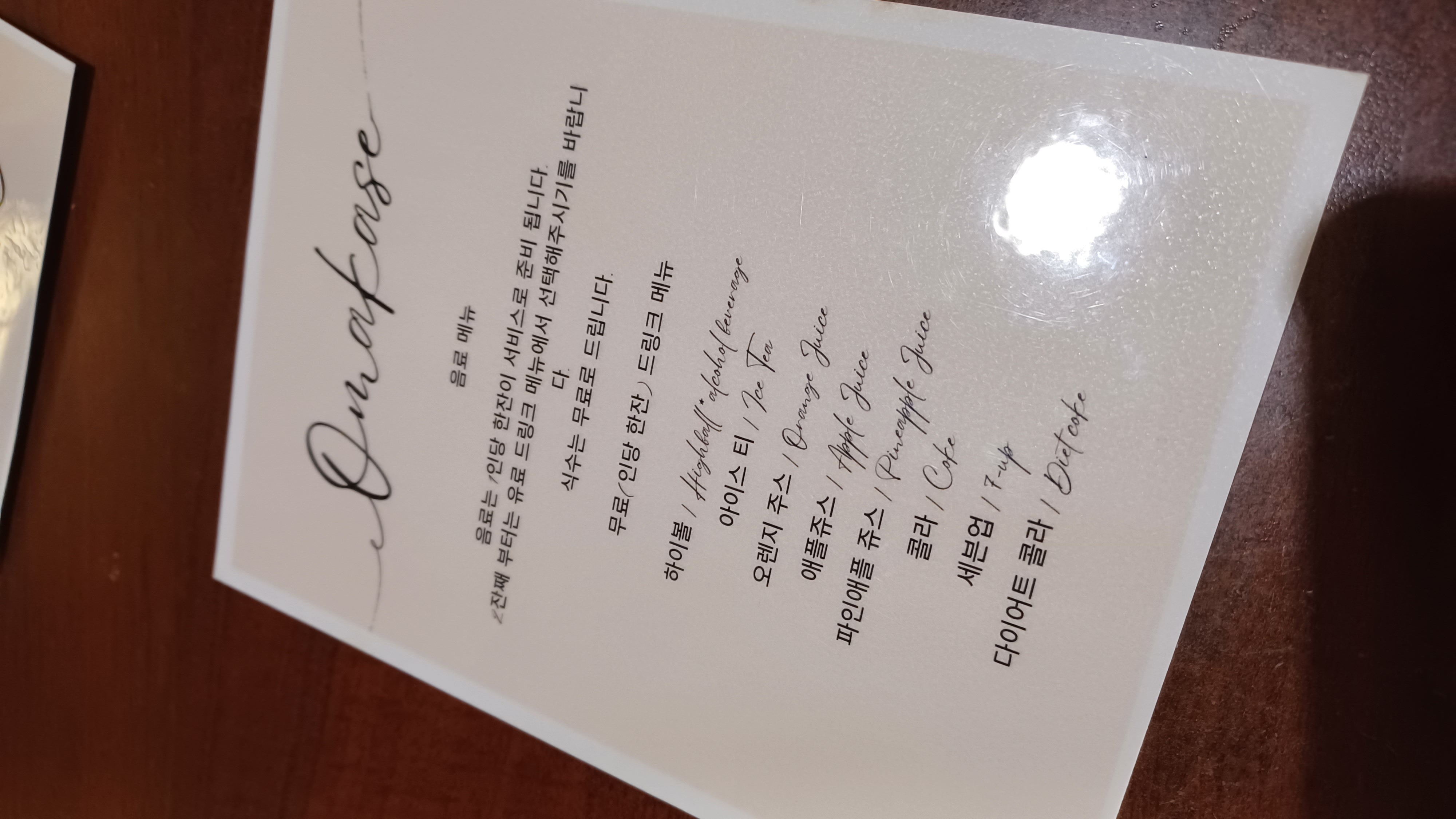 석식 쿠폰에서 주는 오마카세에서 음료 하나를 선택할 수 있습니다.