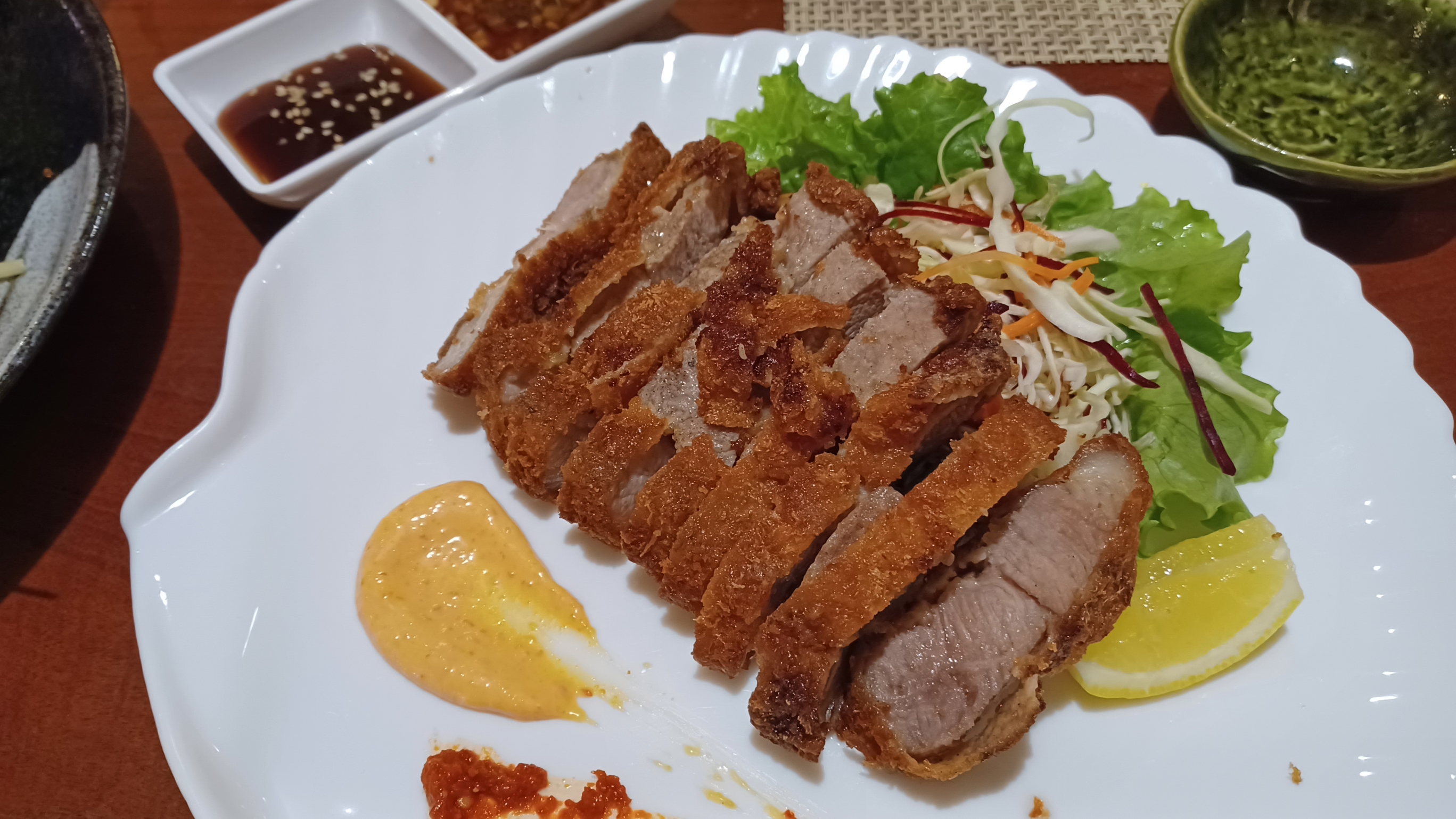 차모로 소스(간장소스, 빤간 매운 소스)를 곁들인 카츠