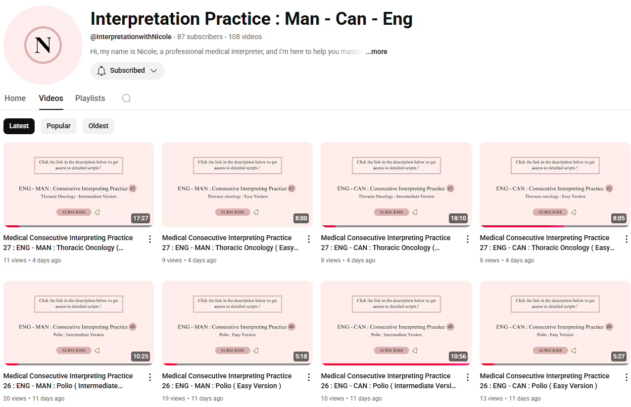 Hi, my name is Nicole, a professional medical interpreter, and I’m here to help you master Mandarin-Cantonese-English consecutive interpretation, with a special focus on the medical field. On my YouTube channel, I provide practical interpretation practic