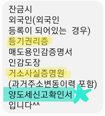 잔금 시 외국인(외국인 등록이 되어 있는 경우)
