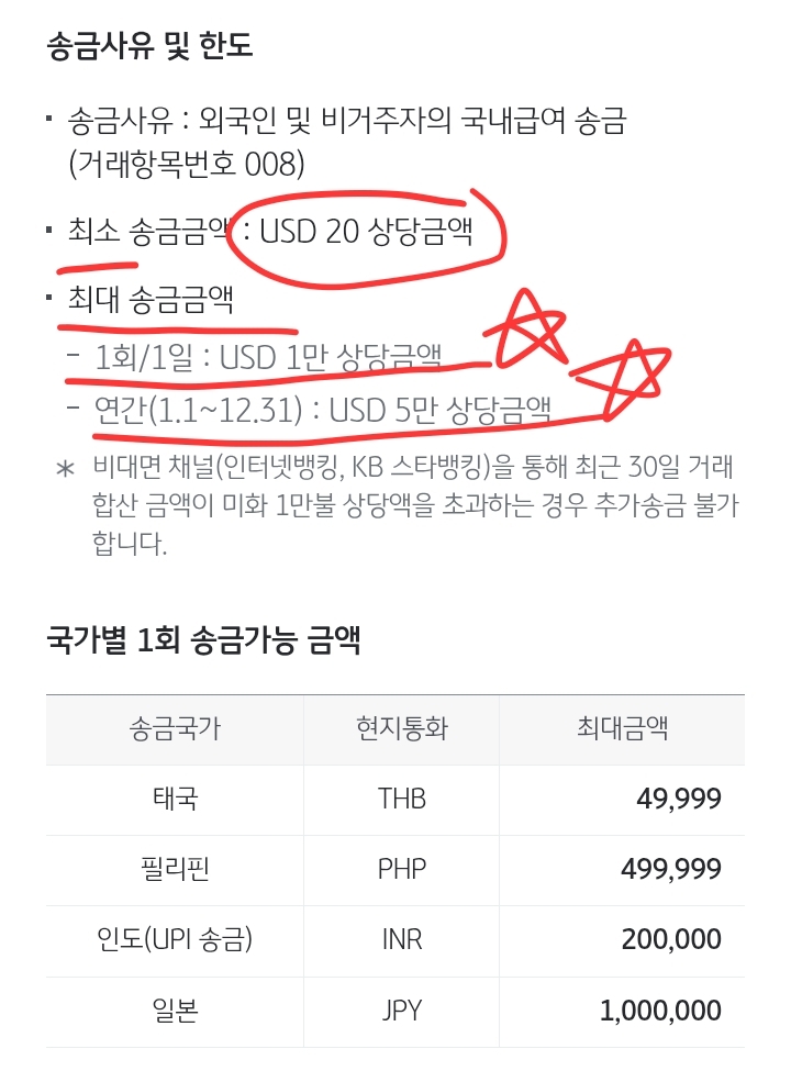 저는 한국에서 경제활동을 하고 있는 미국시민입니다. 저는 매해 미국의 제 은행계좌로 달러를 송금을 하고 있는데요. 최근에 kb국민은행 모바일뱅킹의 해외송금 메뉴에 KB Quick Send라는 새로운 송금방식이 생긴 것을 발견하고 사용해 보았습니다. 퀵 센드는 ACH방식으로 입금되는 방식이라 수수료 5000원만 발생하고 돈을 받는 미국계좌에서 따로 빠져나가는 돈이 없습니다. 기존에 해외송금을 보내는 방식에서는 수수료 5000원에 전신환료 1만 8천 원, 그리고 돈을 받는 미국 통장에서 15불이 지출되는 식이었습니다. 크러니 퀵센드 방식을 쓰면 4만 원 정도의 비용이 절약되고 단돈 5천 원에 해외송금을 할 수 있는 것입니다. 퀵센드를 위해서는 먼저 외국환은행을 지정해야 합니다. 일반 송금과 절차는 매우 비슷하지만 주의할 점은, 미국 은행계좌의 은행번호를 입력할 때 paper & electronic 용 라우팅 넘버 routing number를 써야 하는 겁니다. 이전에 쓰던 일반 해외송금에서는 wire용 라우팅 넘버를 입력하니까 실수하시면 안 됩니다. 저는 처음에는 멋모르고 와이어 용 라우팅 넘버를 입력하고 퀵 센드를 보냈다가 송금이 되지 않고 일주일정도 진행이 안 되어서 결국 은행에 직접 가서 은행원과 상담한 후 송금 실패한 돈을 돌려받았습니다. 아무튼 저는 첫번째로 시도한 퀵센드가 라우팅 넘버를 잘못 적어서 실패하고, 다시 한번 더 ach 용, 즉 페이퍼 및 일렉트로닉 용 라우팅 넘버를 사용해서 퀵센드를 시도했습니다. 퀵센드를 실시한 이후 6시간 정도가 지나고 미국 통장에 입금완료가 되었습니다. 한 번에 송금 가능한 금액이 최소 20불에서 최대 만 불이고 일 년에 최대 오만 불을 보낼 수 있습니다. 기존 해외송금에서는 제 국민은행의 외환계좌와 원화계좌를 다 사용해서 송금 가능했으나, 퀵센드는 한국통장에서만 해외송금이 가능한 것도 특징입니다. 저는 앞으로 수수료가 절대적으로 저렴한 퀵센드를 유용하게 이용할 것 같습니다. 국민은행 계좌가 있는 다른 분들께도 kb 국민은행의 퀵센드로 해외송금 보내시길 추천드립니다. #해외송금 #교포한국생활