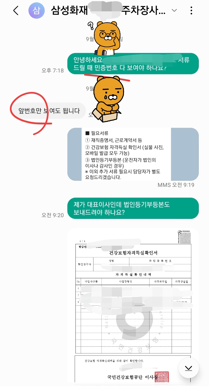 일단 제 건강보험자격득실확인서와 재직증명서를 담당자 핸드폰 문자로 보냈습니다.