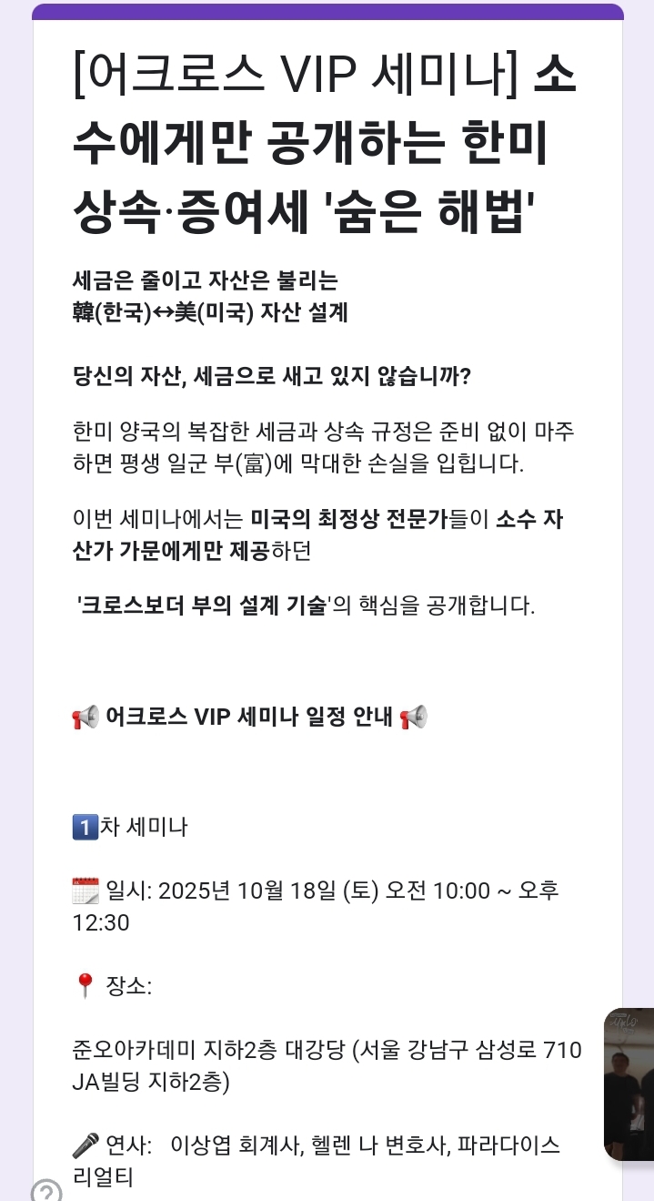 | 한미 증여 상속 숨은 해법 세미나 (0) | 2025.10.19 |