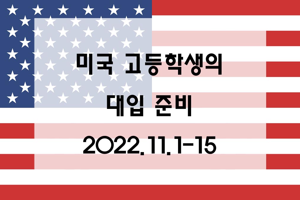| 미국 고등학생 대학입시 준비(2022.10.16-29) (0) | 2022.10.29 |