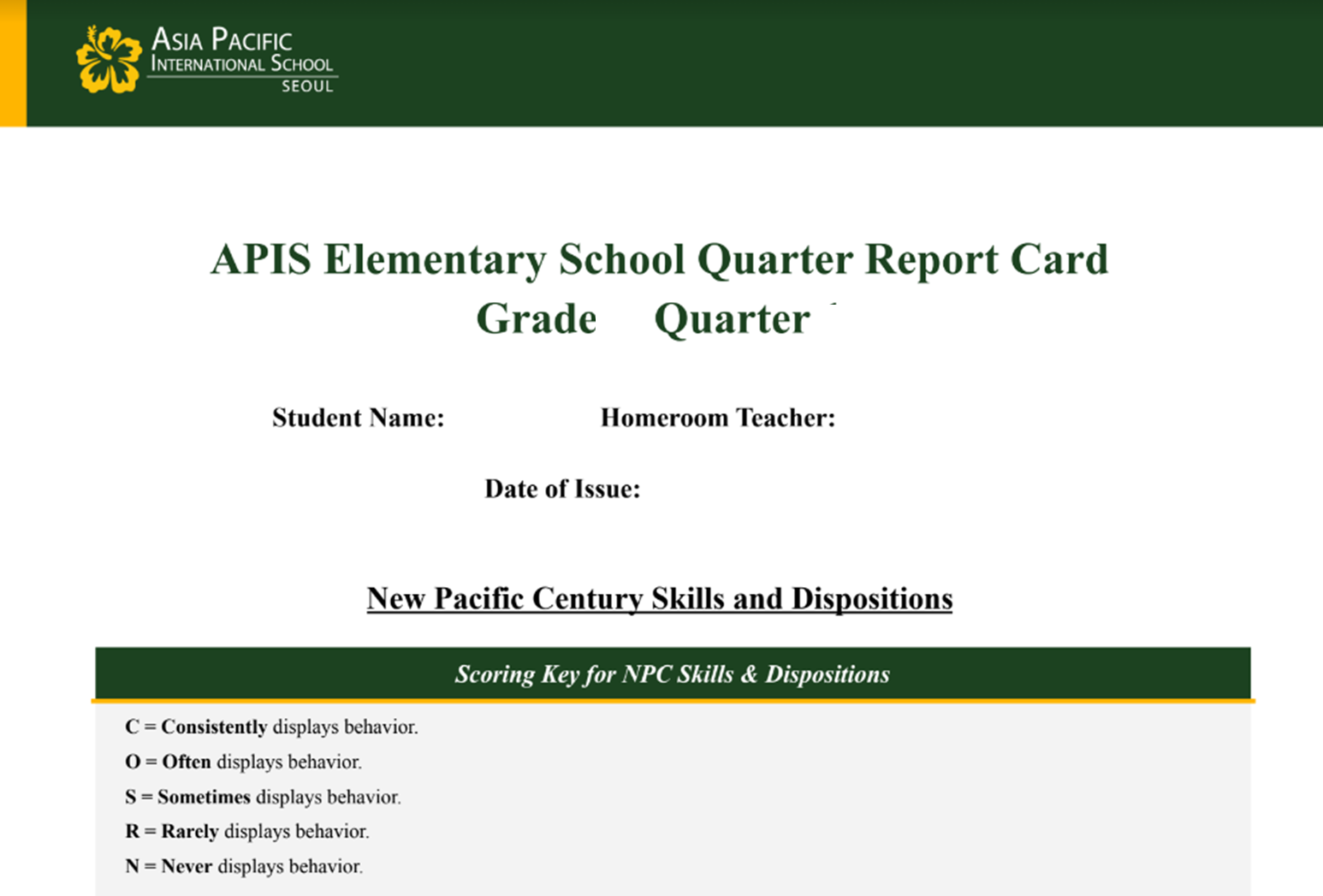 | 아시아 퍼시픽 국제 외국인학교 APIS 중학교 성적표 (0) | 2022.11.12 |