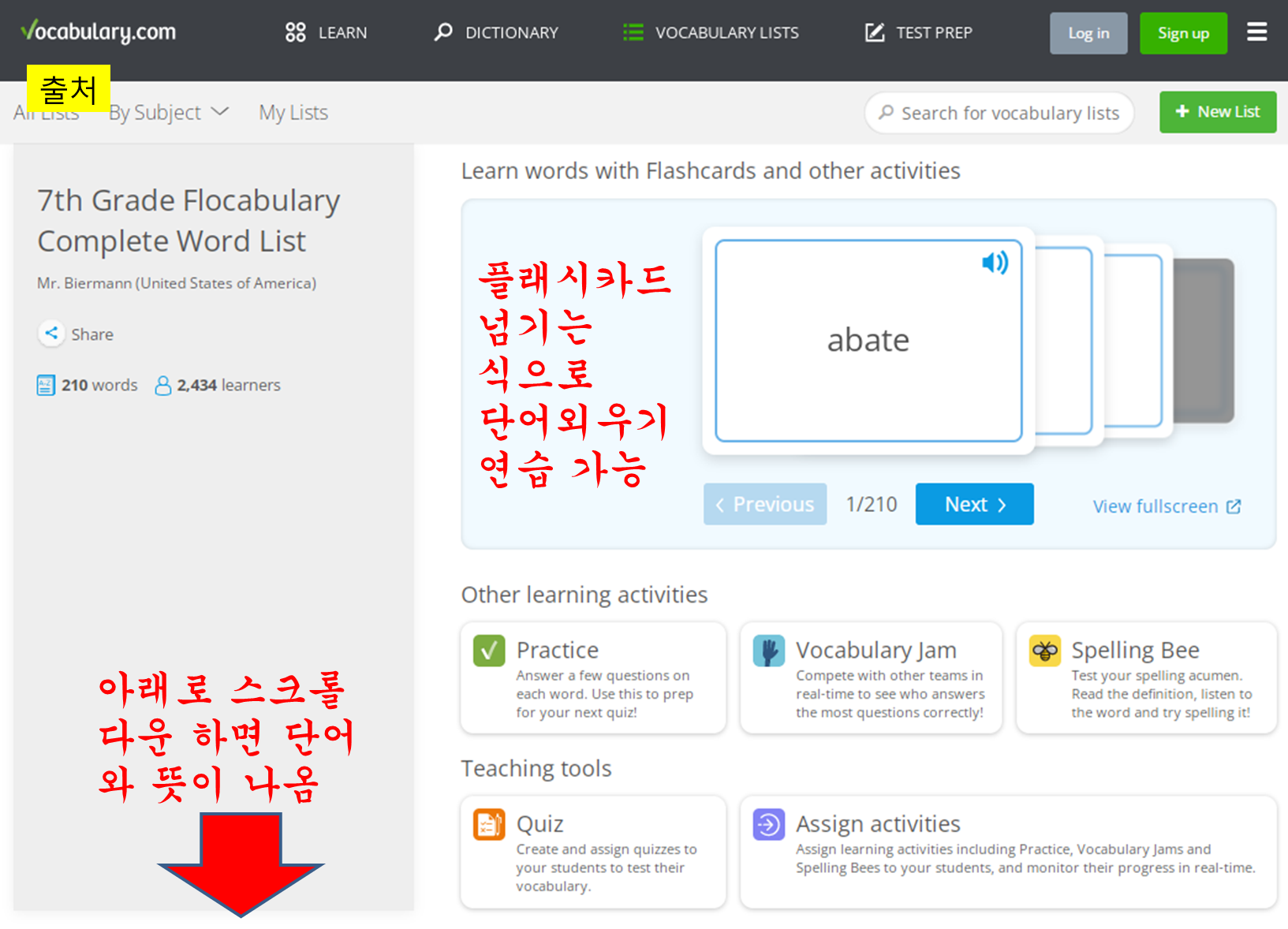 vocabulary.com이라는 웹사이트가 있는데, 엄청난 보물을 찾아낸 기분이다.